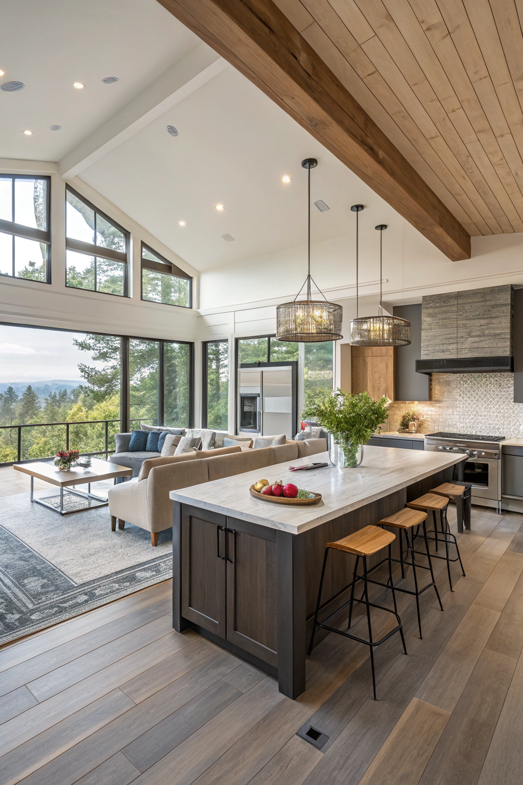 PinOpen-concept design revolutionizes the way you interact with your kitchen, turning it into a multifunctional space that seamlessly connects to your living areas. You'll find cooking, dining, and socializing flow together effortlessly. This layout fosters communication with family and friends while you work. Plus, it maximizes light and creates an inviting atmosphere, making your home feel larger and more connected.