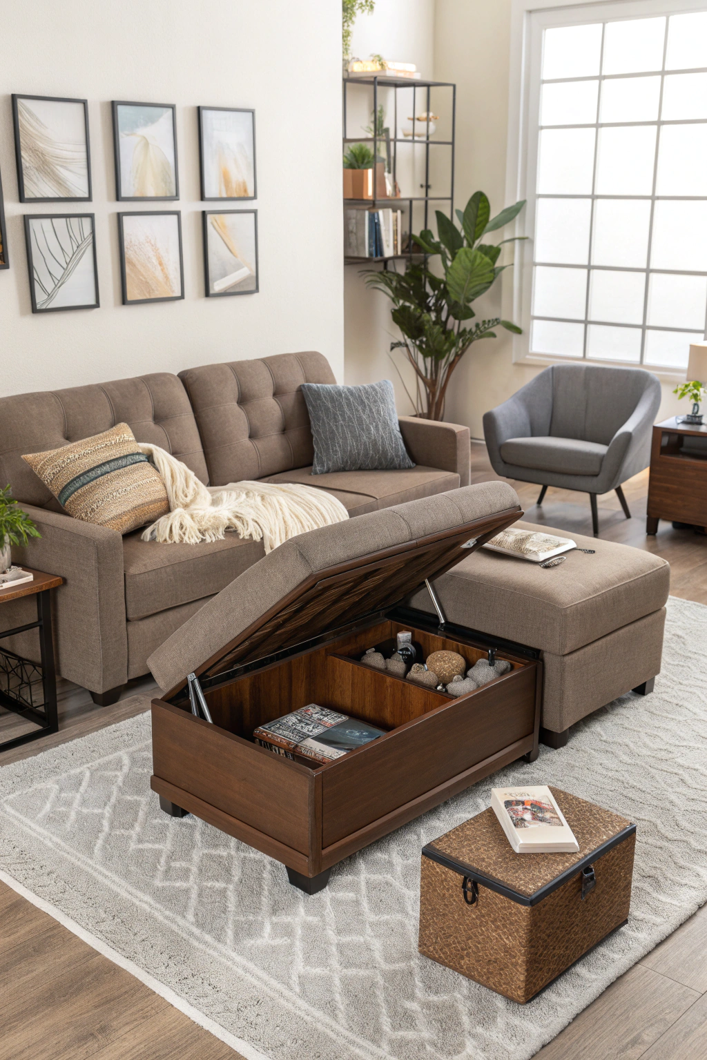 - Multi-functional furniture (e.g., ottomans)