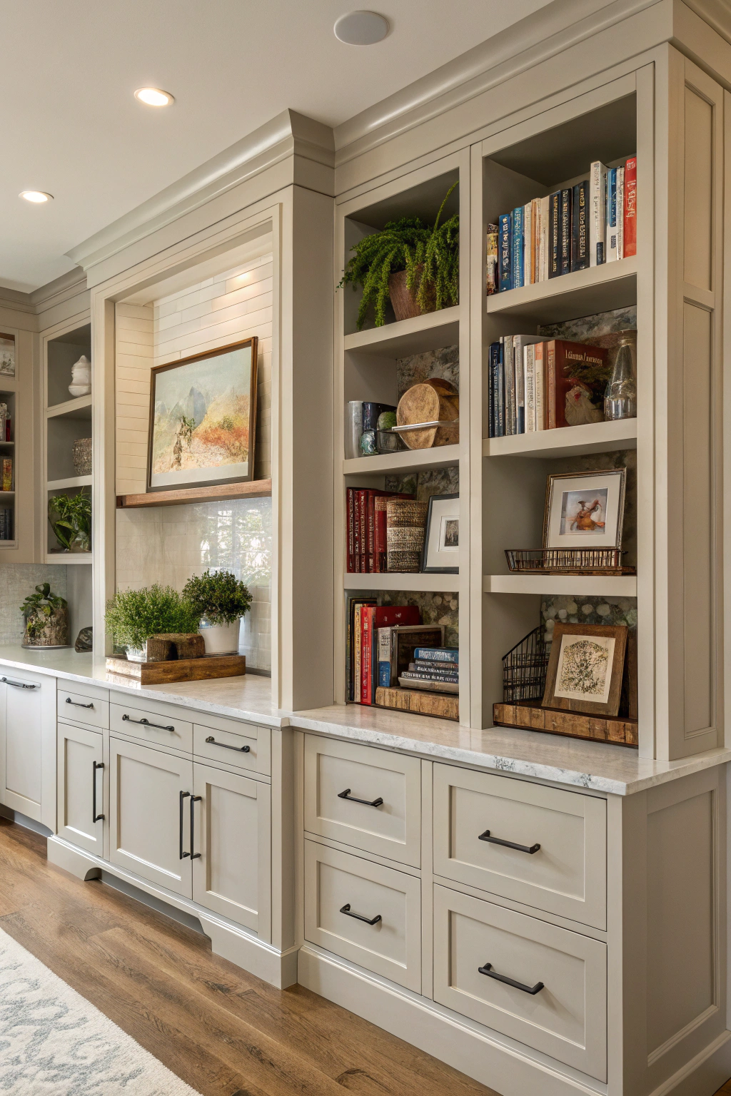 PinIncorporating built-in bookshelves into your kitchen design not only adds practical storage but also creates a cozy, inviting focal point. Consider these features for your shelves: