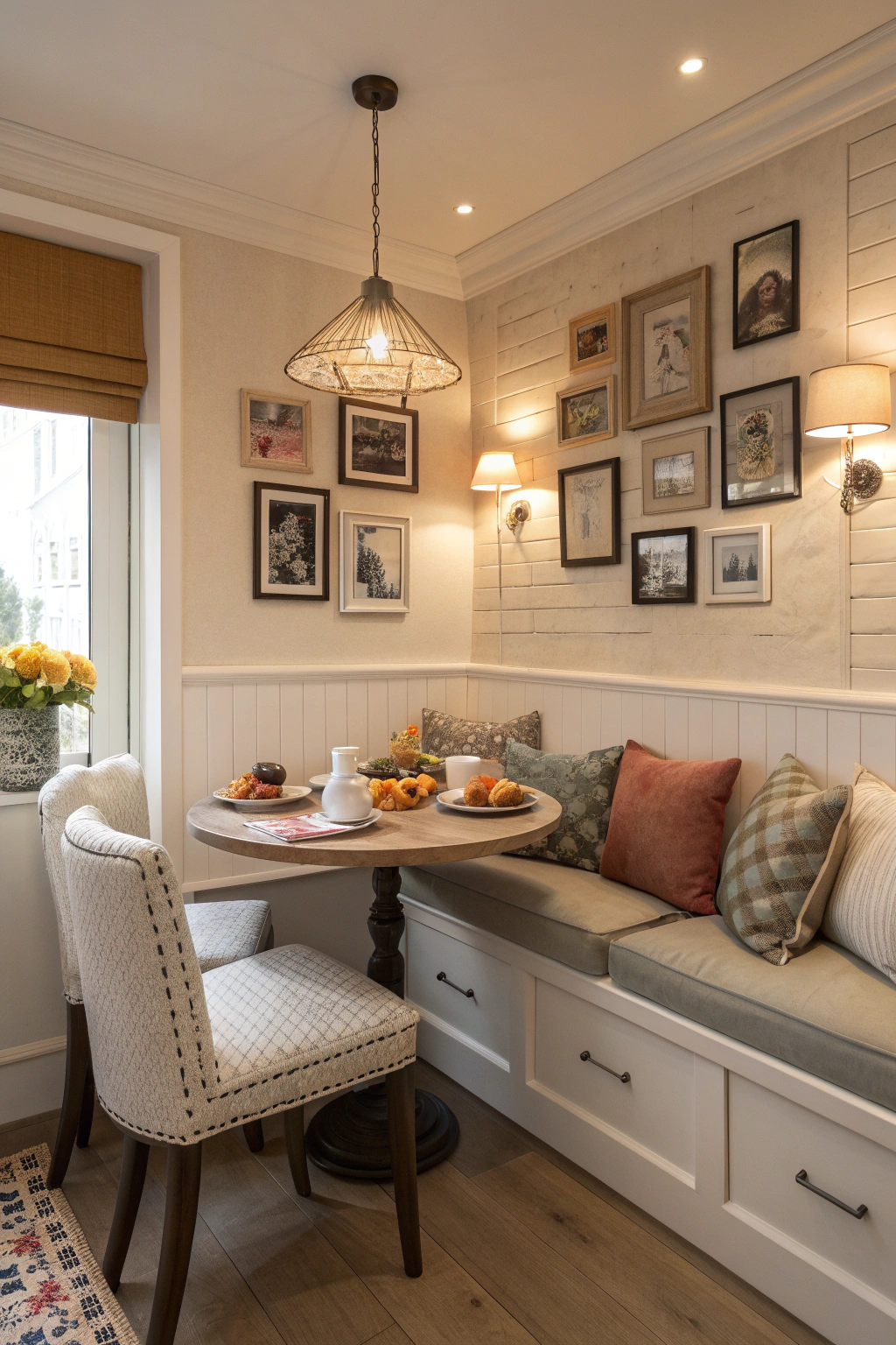 PinThere's something inviting about a cozy breakfast nook that makes mornings feel special. You can enhance this charm by adding plush cushions, soft lighting, and a small table for intimate meals. Consider incorporating personal touches like artwork or family photos. With a cozy nook, you create a welcoming space that encourages leisurely breakfasts and rich conversations to kickstart your day.