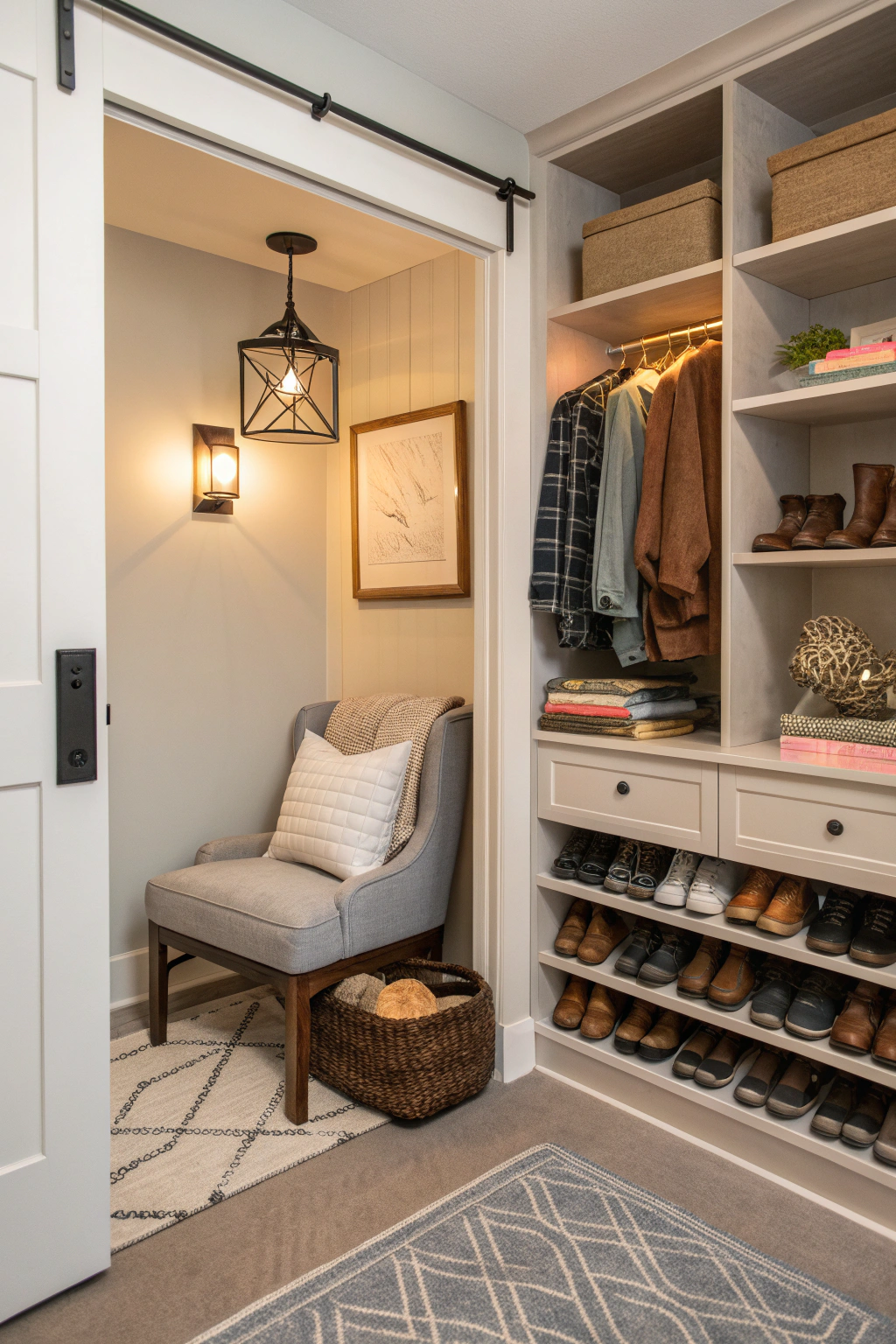 PinAfter organizing your shoes in a stylish rack, consider creating a cozy nook in your closet that serves as a relaxing retreat. This space can be a personal refuge filled with comfort and style. Here are some essentials for your cozy nook: