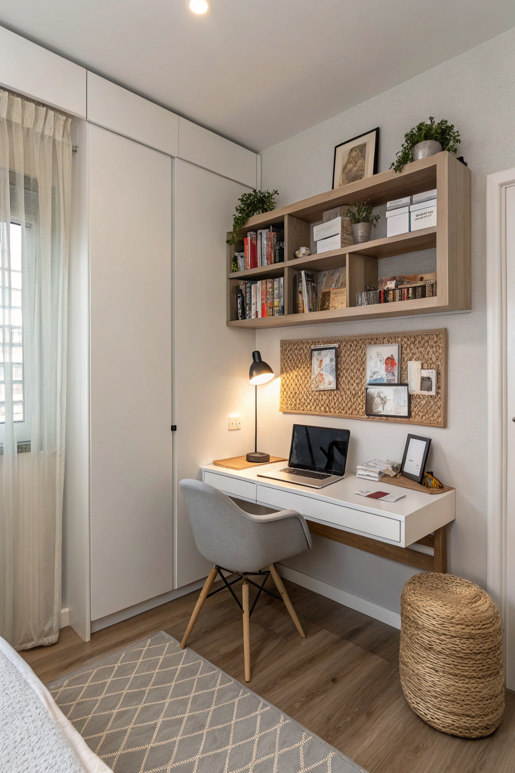 - Use multi-functional furniture, like a desk that doubles as a nightstand.