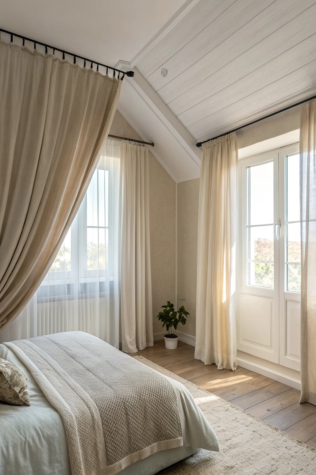 PinCreating a sense of height in a small bedroom can greatly impact its overall feel, making it appear more spacious and airy. By hanging curtains high, you'll draw the eye upward and enhance the room's dimensions. Here's how to maximize this effect: