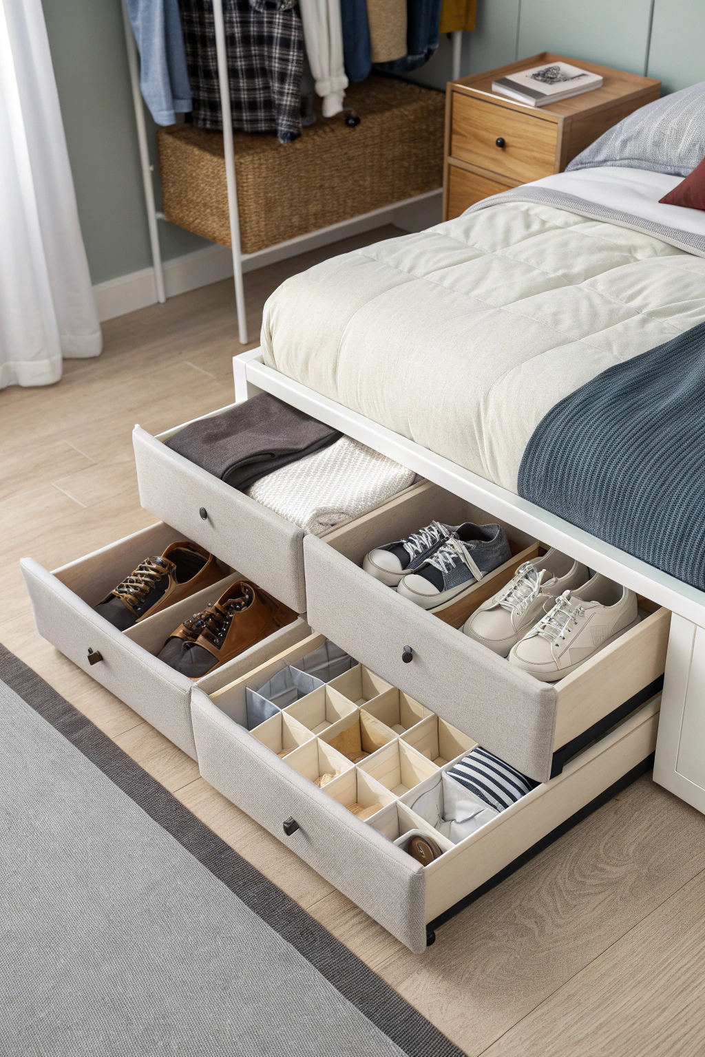 PinFinding smart solutions for small spaces can make a big difference, and opting for under-bed storage is one of the best ways to maximize your room's potential. Use bins or drawers to organize clothes, shoes, or seasonal items you don't need daily. This approach keeps your room tidy, frees up valuable floor space, and adds functionality without sacrificing style.