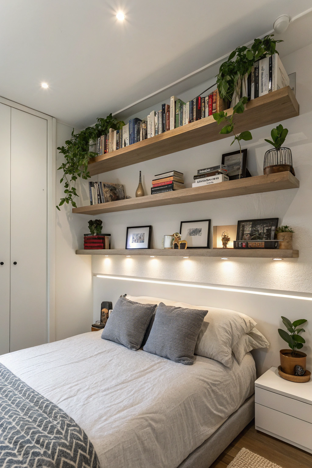 PinFloating shelves can be a game-changer in small bedrooms, providing both storage and decorative opportunities without consuming valuable floor space. By installing them above your bed or desk, you can display books, plants, or personal mementos, adding character to your space. Choose sleek designs to keep the room feeling open and airy, while also keeping your essentials easily accessible.