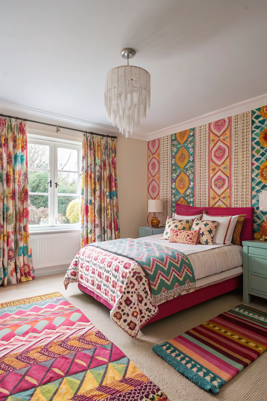 PinIncorporating bold patterns into your small bedroom can create a vibrant atmosphere and make the space feel more dynamic. Consider using patterned bedding, rugs, or curtains to add visual interest. You might even paint an accent wall with a daring print. Mixing different patterns can also work well, just make certain they complement each other to maintain harmony and avoid overwhelming the room.