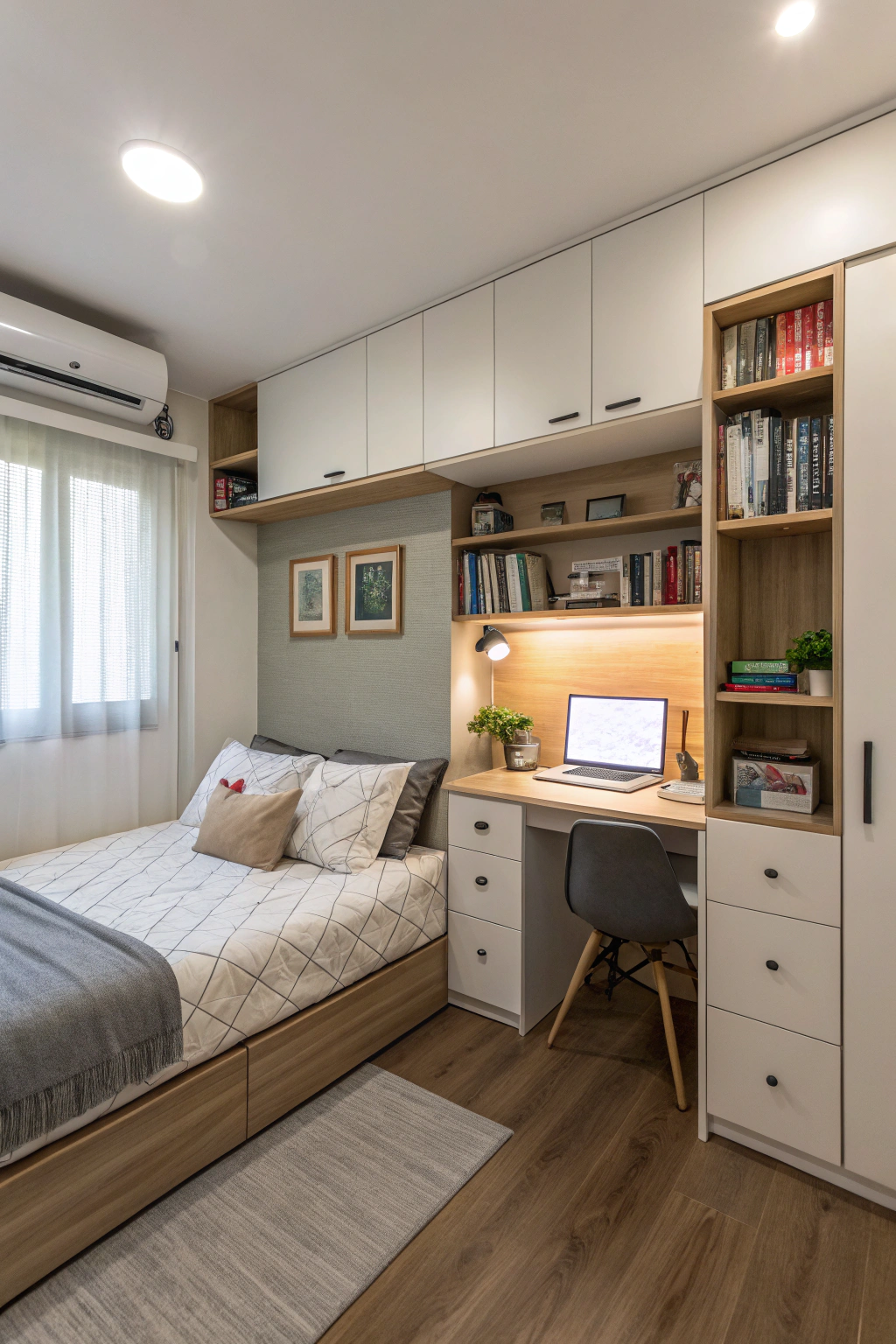 PinMaking the most of your small bedroom means not just focusing on the floor space but also looking up to utilize vertical space effectively. Install shelves above your bed or desk to store books and decor. Use tall cabinets for storage, and hang hooks for bags or accessories. Consider wall-mounted lighting to free up surfaces while adding a stylish touch.
