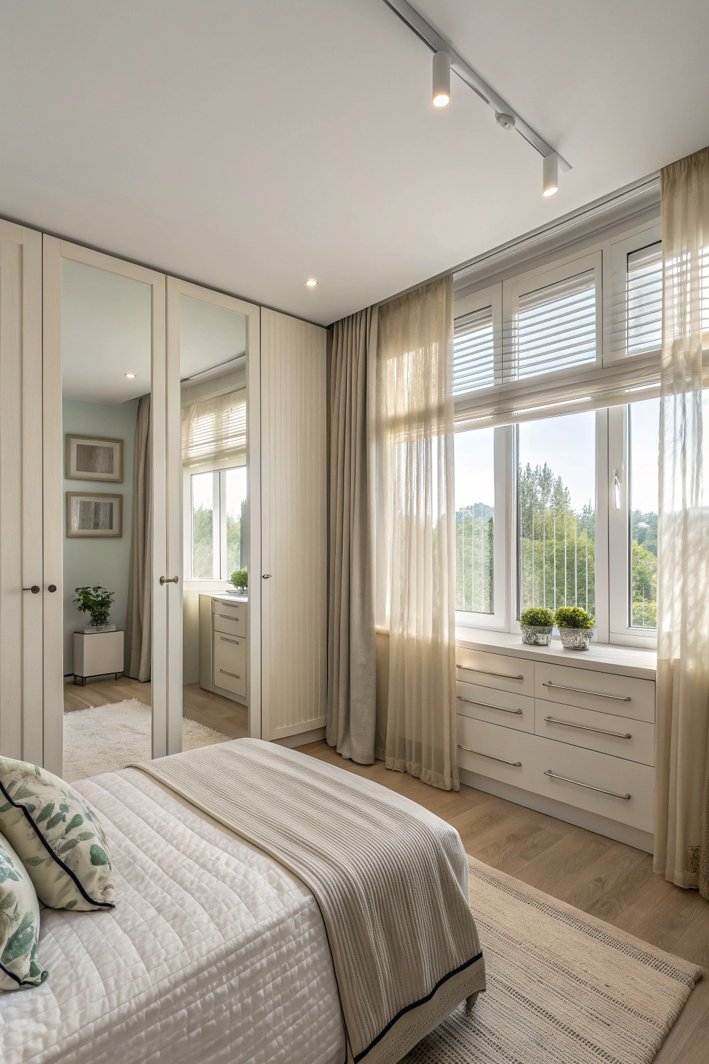 PinUtilizing mirrors strategically can dramatically enhance the perception of space in your small bedroom. Hang a large mirror across from a window to reflect natural light, making the room feel brighter and more expansive. You can also place smaller mirrors in corners or on dressers to create depth. This simple trick will instantly elevate your bedroom's ambiance and functionality without taking up extra space.