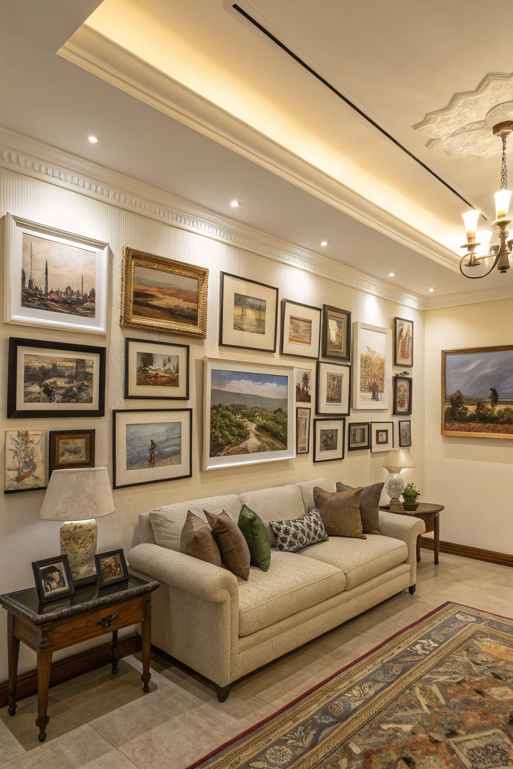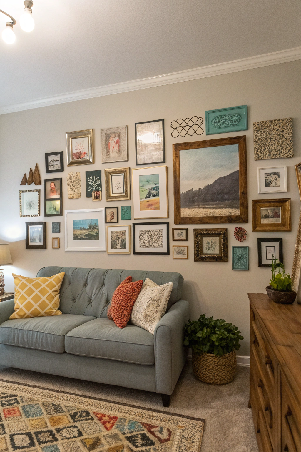 - Gallery wall with mixed frames