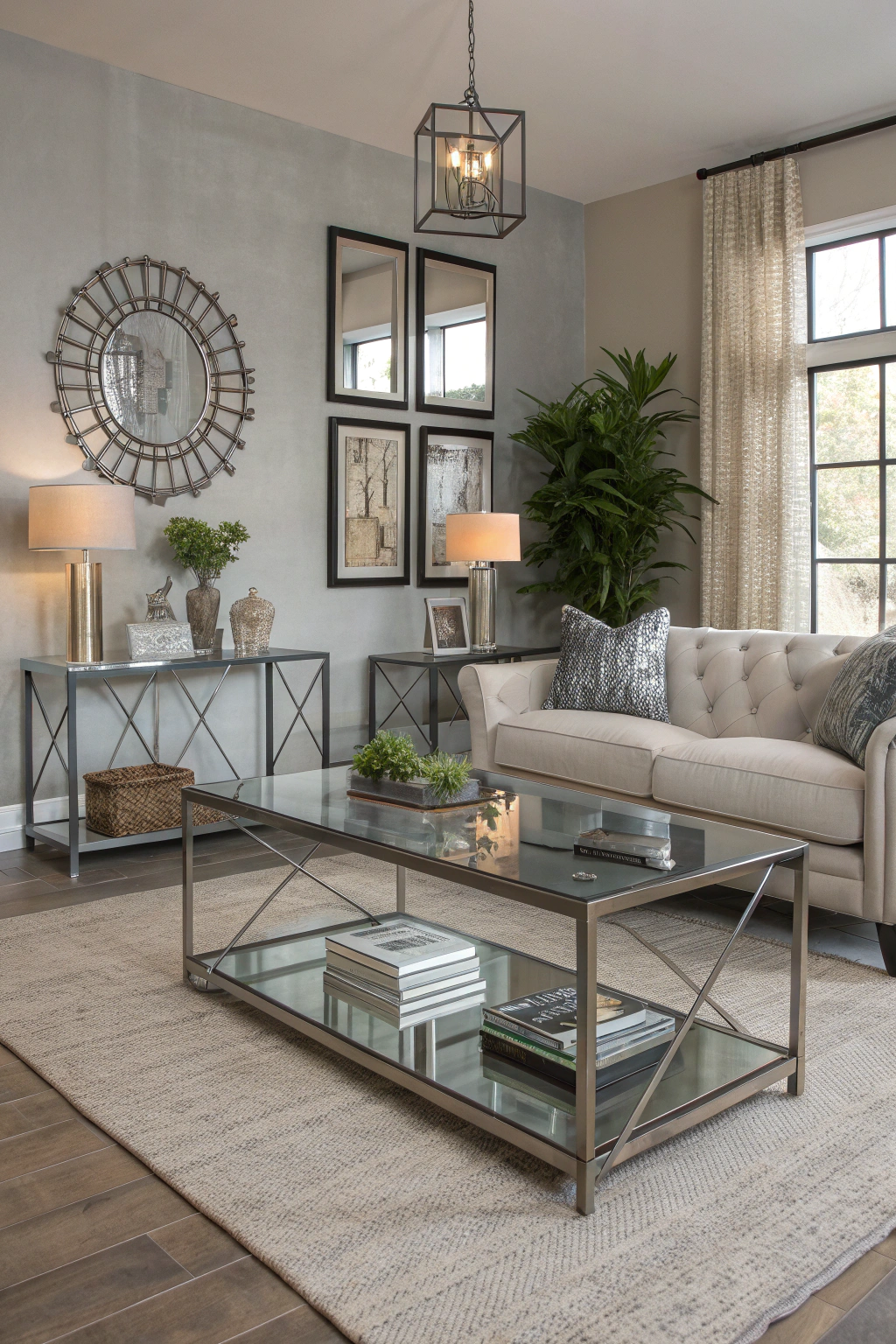 PinCombining glass and metal can elevate your living room's style, creating a harmonious blend of elegance and industrial charm. Consider sleek metal furniture paired with glass accents, like a coffee table or side table. Use metal frames for artwork or mirrors to tie the look together. This combination not only enhances visual interest but also reflects light, making your space feel larger and brighter.