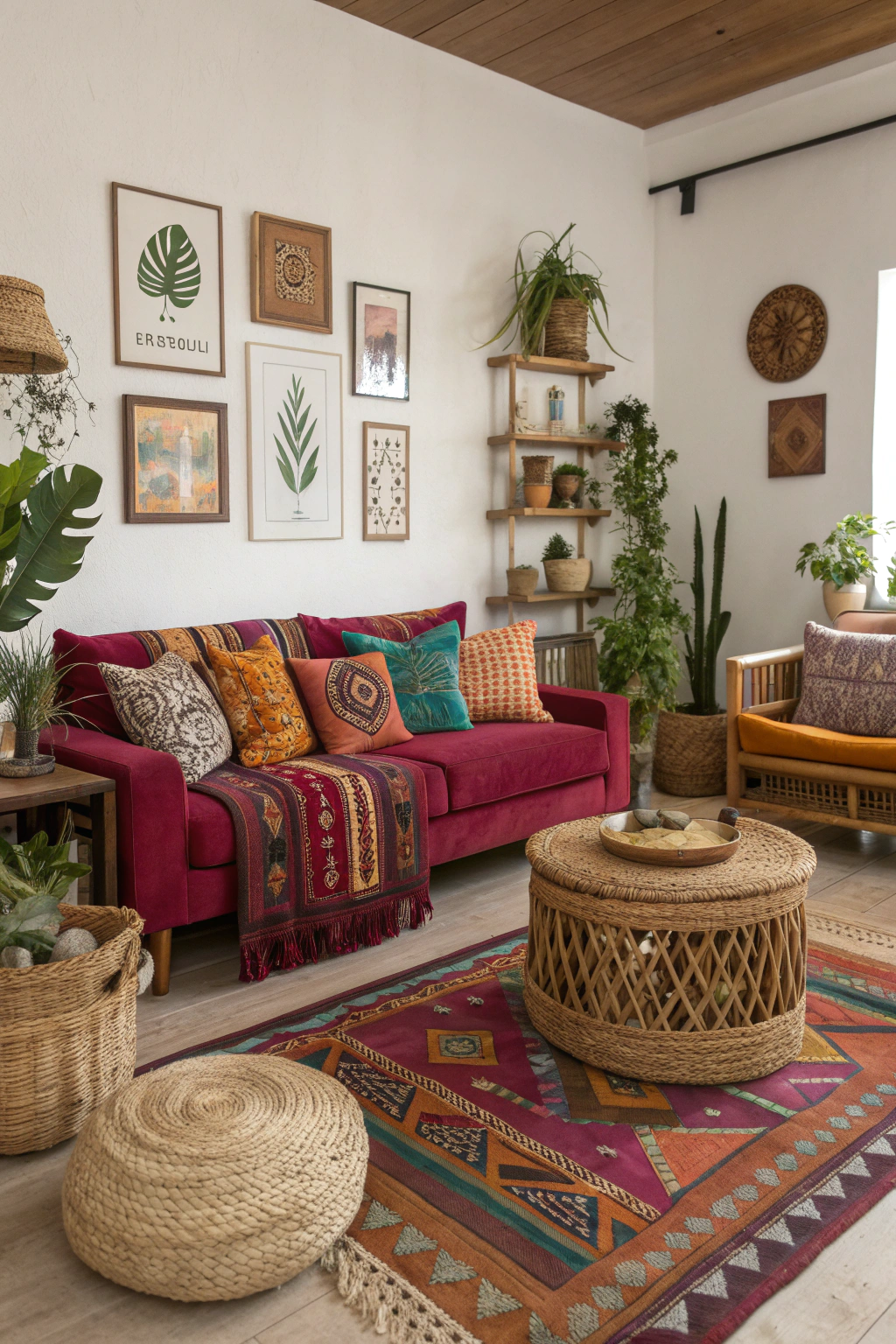 PinEmbracing the essence of Modern Bohemian style can turn your living room into a vibrant tapestry of color and texture. Incorporate rich jewel tones, plush textiles, and layered patterns to create depth. Use natural materials and live plants for an organic touch. Wooden furniture and unique art pieces add character, making your space feel inviting, relaxed, and full of personality.