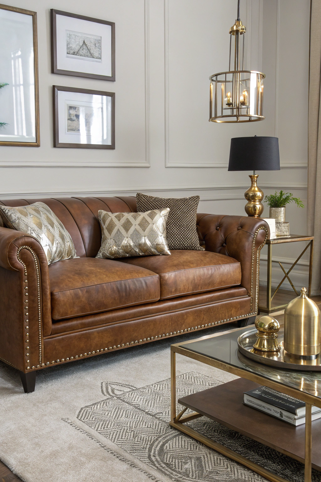 PinMetallic touches can elevate your brown leather couch, providing a modern and sophisticated flair to your living room. Consider adding metallic accent pillows, a sleek coffee table with a brass finish, or gold-toned decor pieces. You might also use metallic picture frames or lamp stands to create visual interest. These elements can blend beautifully with the warmth of the leather, enhancing your overall aesthetic.