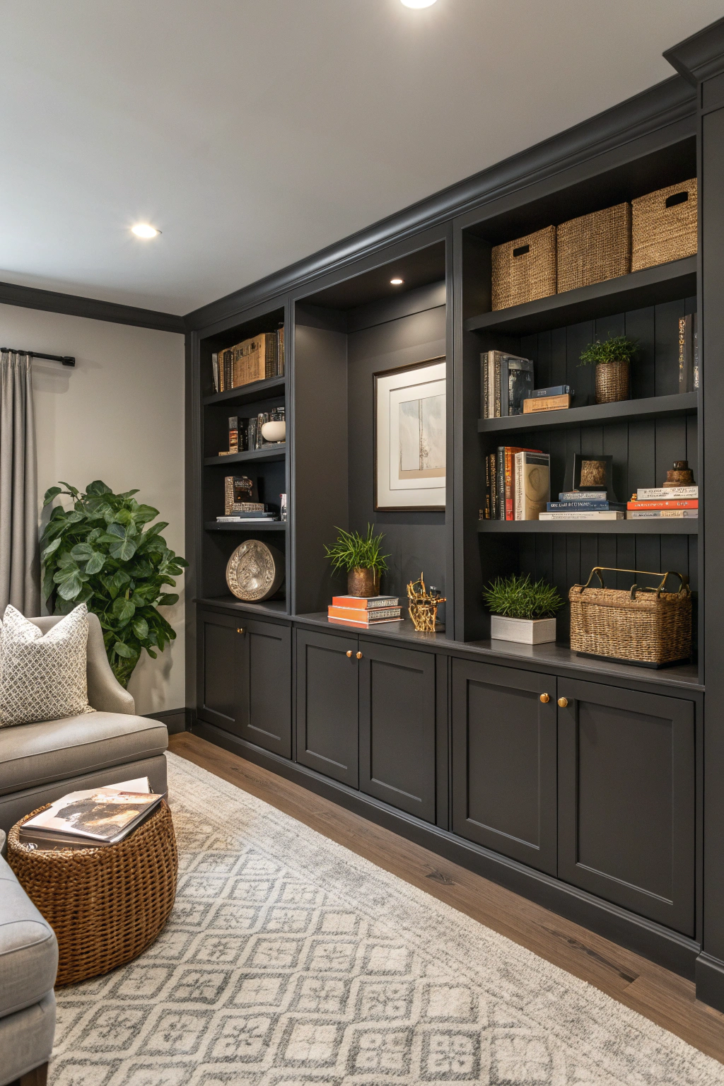 PinBuilt-in shelving transforms your dark room into a functional and stylish space. By utilizing often-overlooked wall areas, you create storage solutions that blend seamlessly with your decor. You can display books, plants, and decorative items, adding personal flair. Choose materials and colors that complement your room's aesthetic, ensuring your shelves enhance the overall ambiance while keeping everything organized and accessible.
