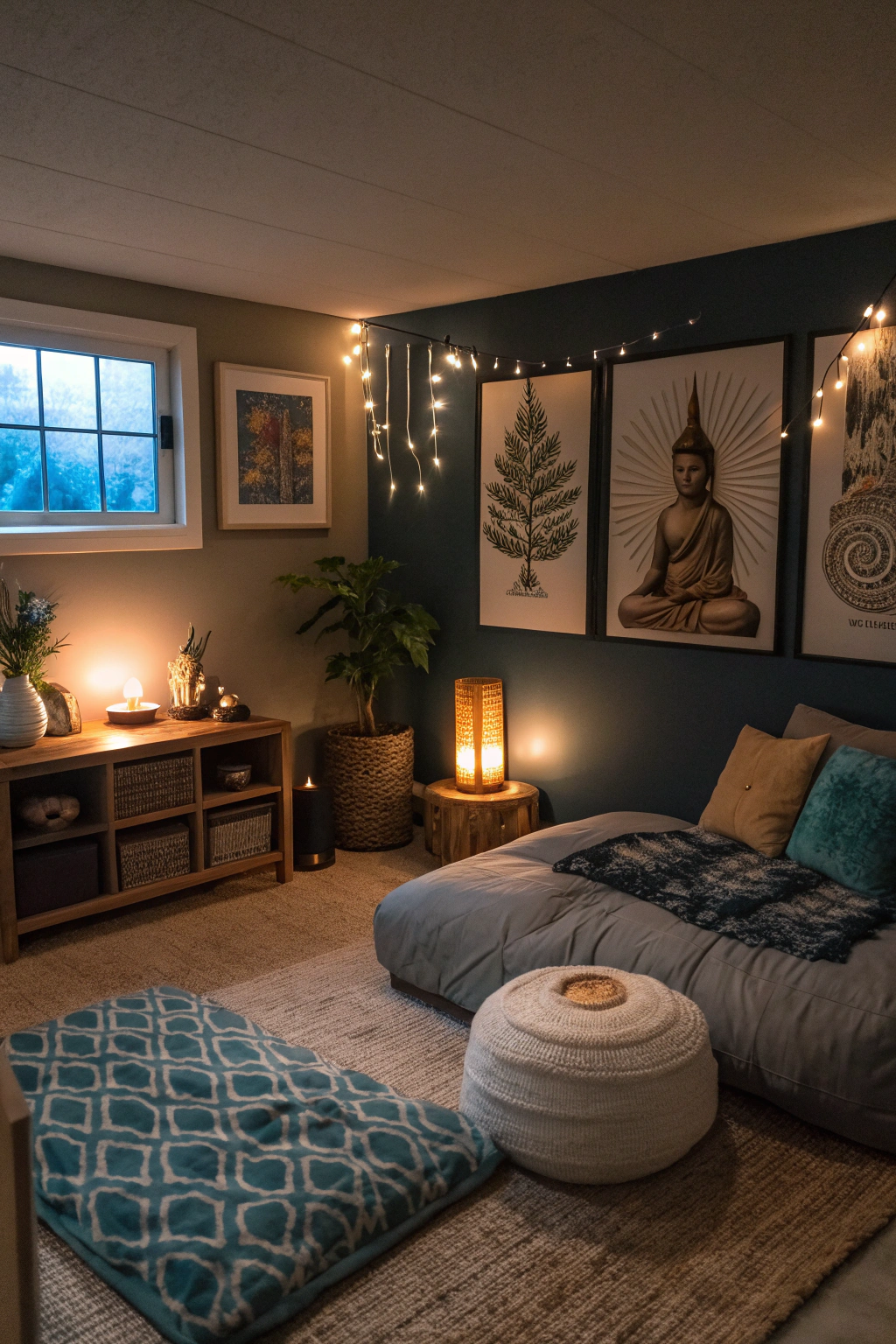 - Warm lighting, like fairy lights or a lamp, to set the mood.