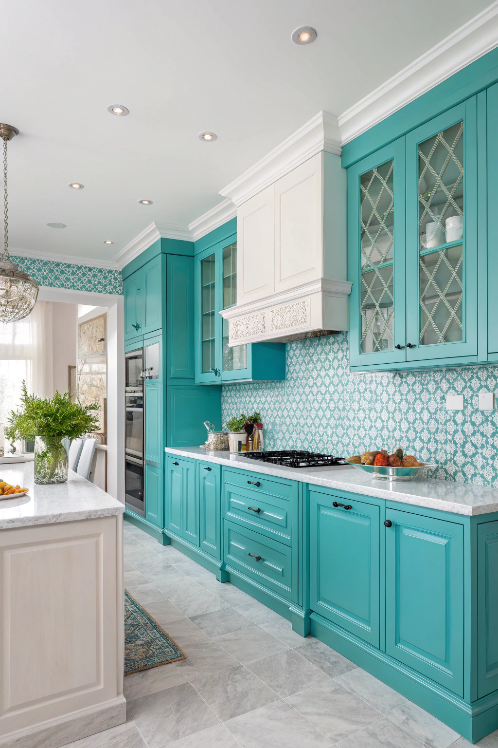 PinA vibrant turquoise kitchen instantly captures attention and breathes life into your home. This bold hue not only energizes the space but also complements various design styles, from modern to coastal. You can use turquoise for cabinets, backsplashes, or accent walls to create a stunning focal point. Pair it with neutral tones or bright white for a fresh, eye-catching aesthetic that truly stands out.