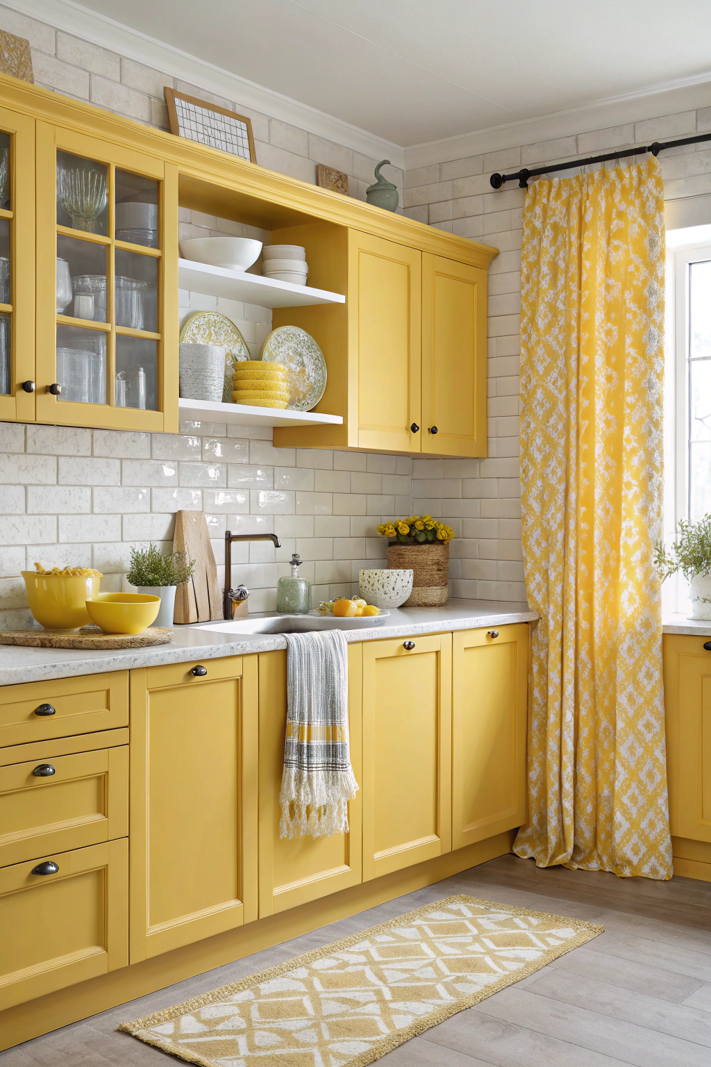 PinAdding cheerful yellow tones can instantly brighten up your kitchen and create an uplifting atmosphere. You can choose sunny cabinets or vibrant accents like curtains and dishware. Incorporating yellow backsplash tiles or painted furniture adds warmth and energy. Pairing yellow with white or soft gray enhances the brightness while maintaining balance. Embrace this joyful color to make your space feel more inviting and lively!