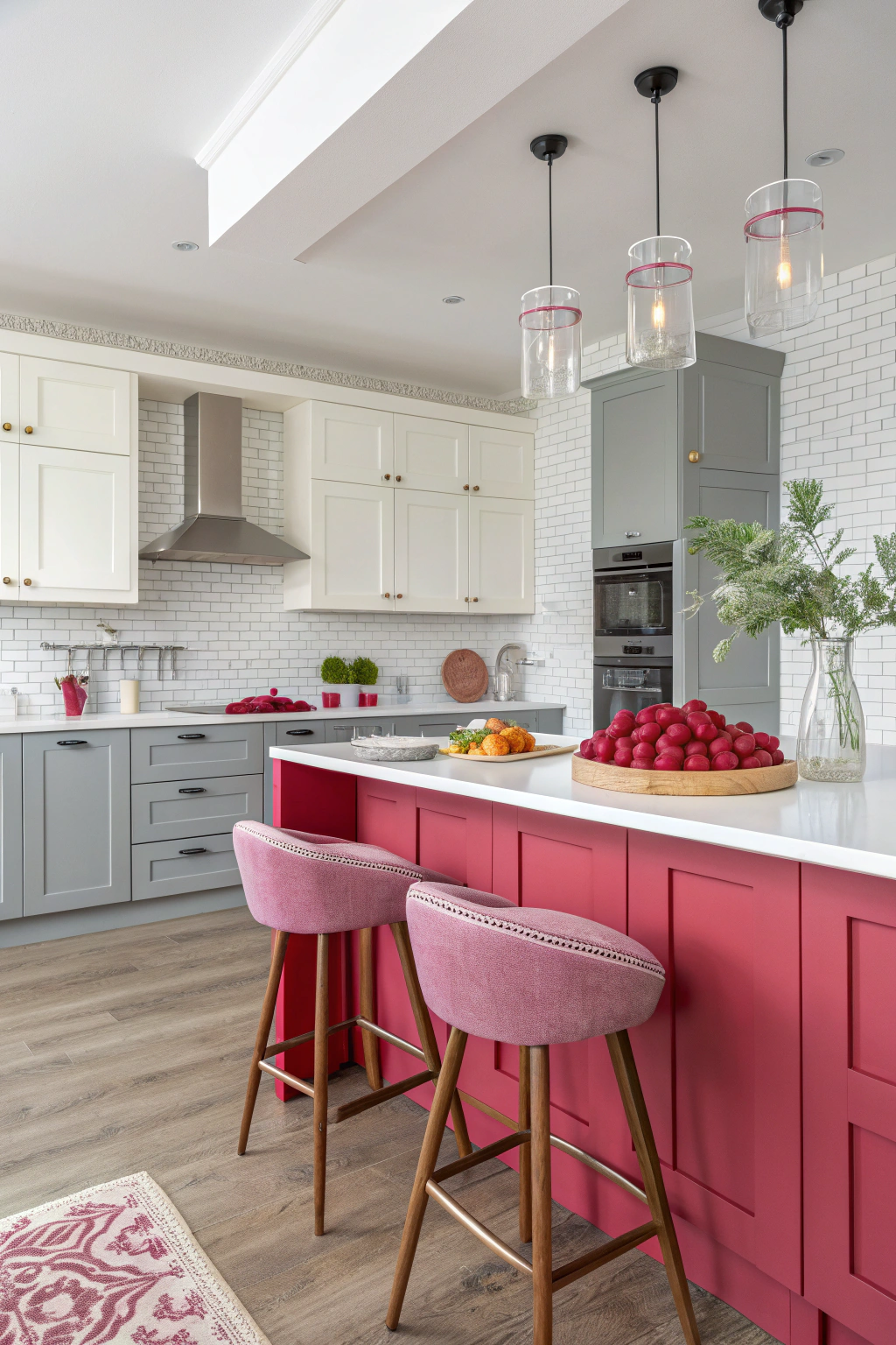 PinBright raspberry delight brings a vibrant energy to your kitchen, infusing the space with a playful yet sophisticated charm. You can incorporate this lively color through accents like cabinets, bar stools, or even a backsplash. Pair it with crisp white or soft grey for balance. This striking hue makes cooking feel less like a chore and more like a creative adventure.