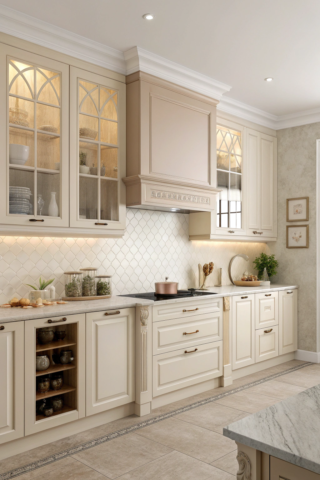 PinSoft creamy neutrals create a serene backdrop for your kitchen, allowing other colors and textures to shine without overwhelming the space. These shades evoke warmth and sophistication, making them perfect for a cozy atmosphere. You can pair creamy whites with soft beige or taupe for depth. Cabinetry, walls, or even countertops in these tones foster a tranquil environment, enhancing your kitchen's inviting ambiance.