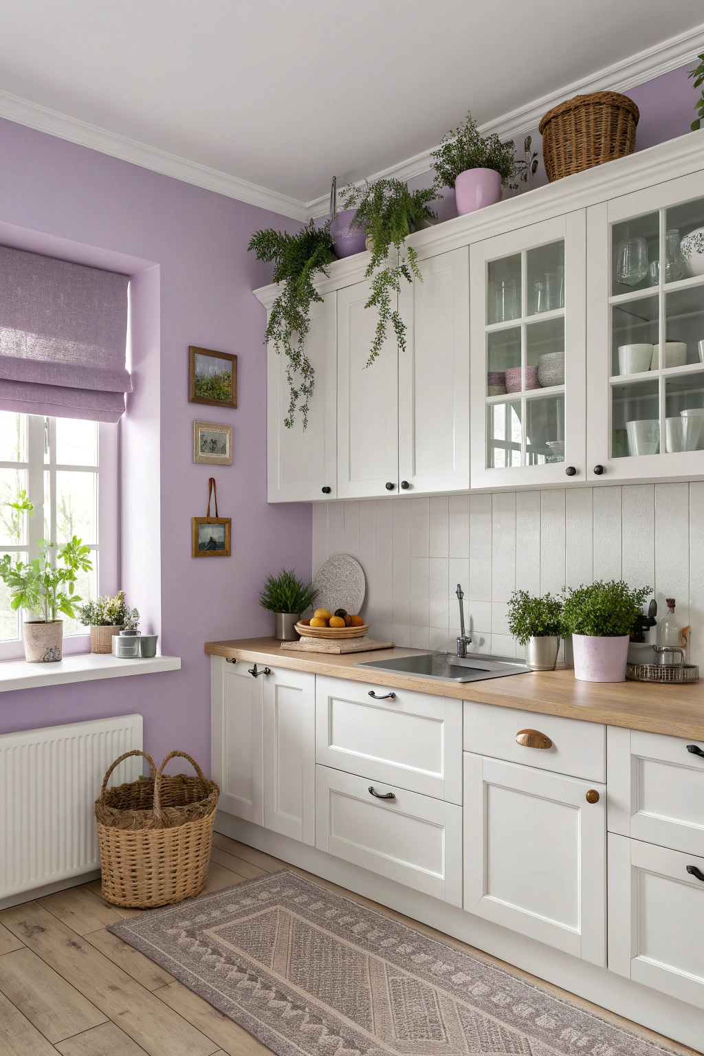 PinTransform your kitchen into a serene retreat with the soothing tones of inviting lavender lush. This gentle color creates a calming atmosphere, making meal prep and family gatherings more enjoyable. Consider pairing lavender with white cabinetry or rustic wood accents for a balanced look. Add touches of greenery, like potted herbs, to enhance the freshness, bringing both style and tranquility into your cooking space.