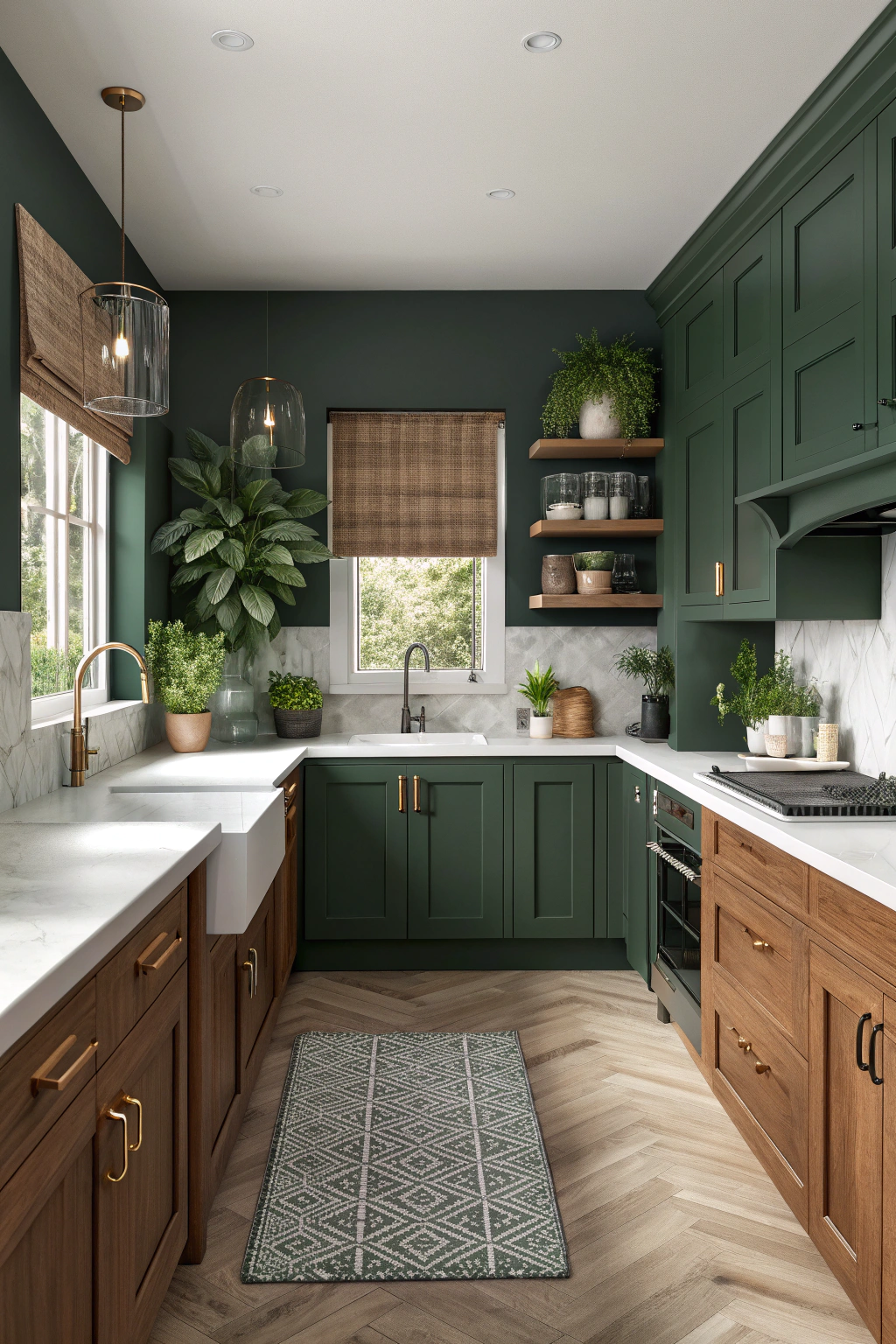 PinTransform your kitchen into an inviting sanctuary with moody forest green, a color that evokes the tranquility of nature. This deep hue can be beautifully paired with warm wooden accents or crisp white countertops for contrast. Consider these ideas to enhance your space: