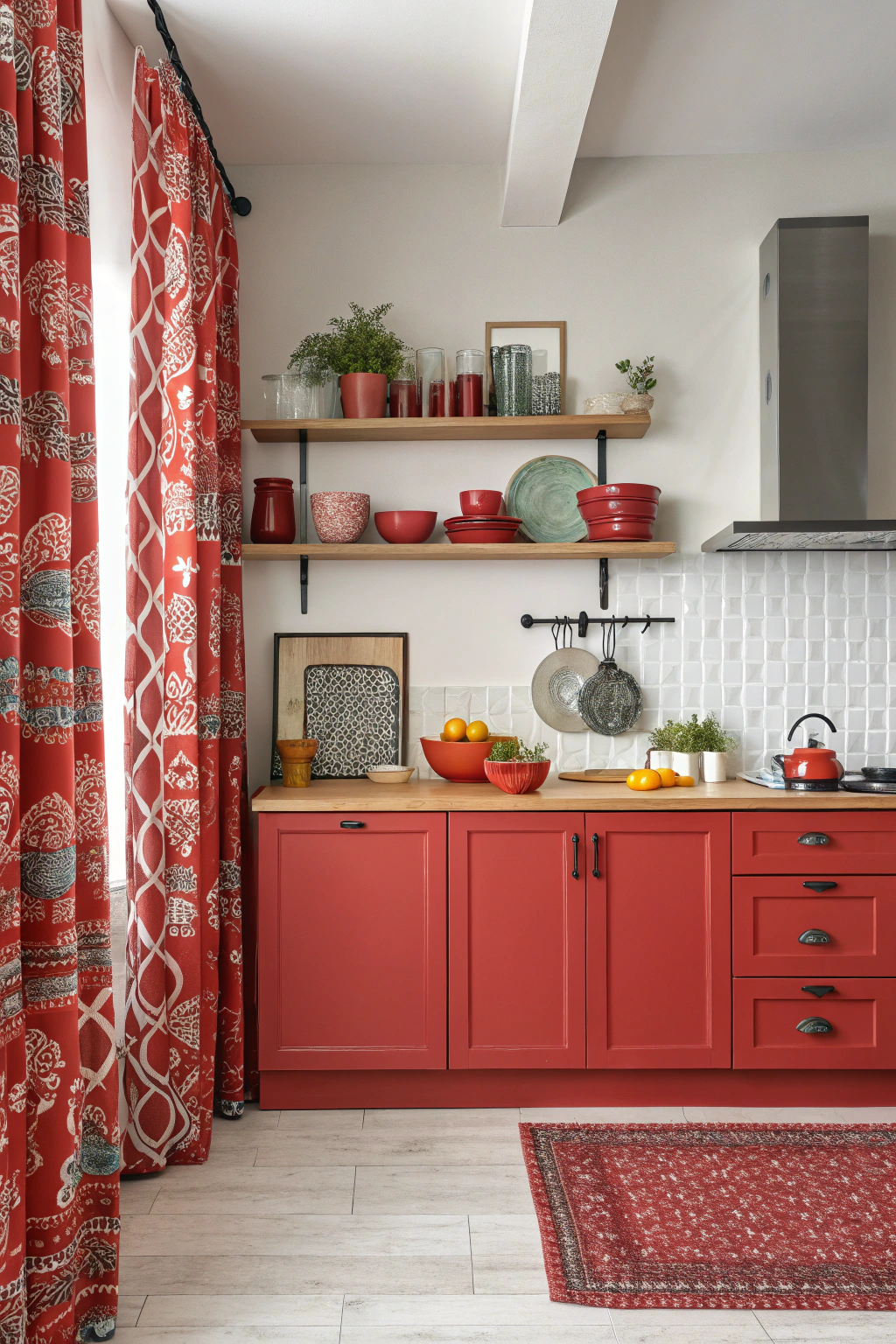 PinWhen you want to make a statement in your kitchen, bold red accents are one of the best ways to do it. You can incorporate red through accessories like vibrant dishware, striking curtains, or even a statement wall. These touches quickly energize the space and draw attention, creating a lively atmosphere. Don't hold back; let those red accents shine and transform your kitchen's vibe!