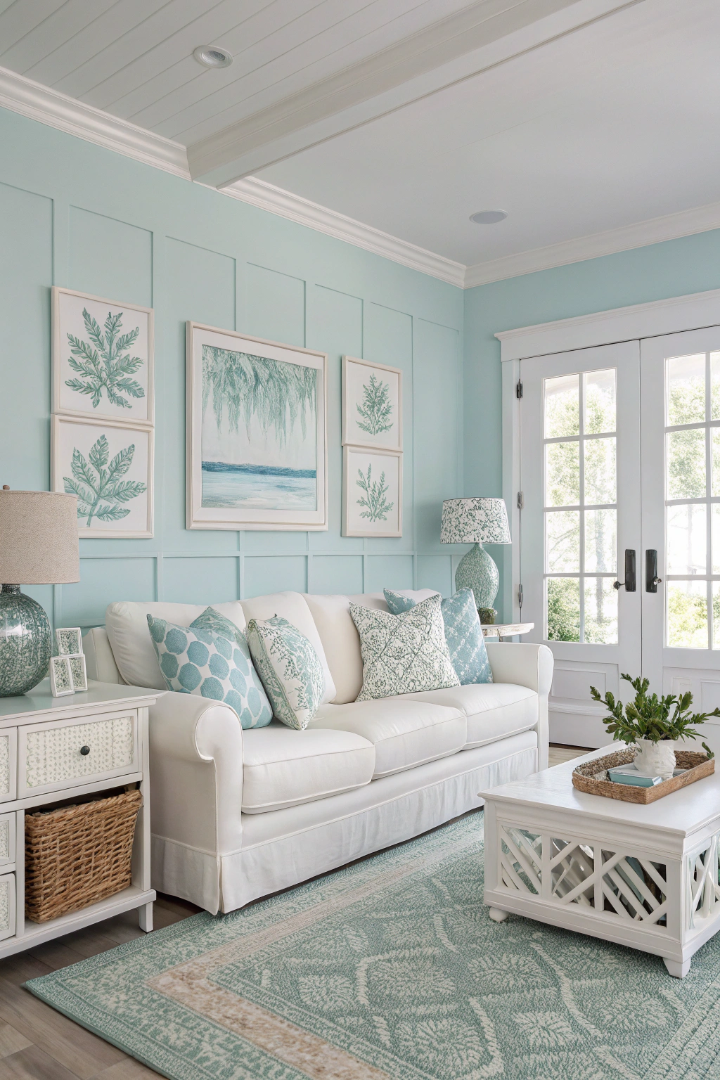 This palette fosters relaxation while maintaining a fresh and airy vibe.