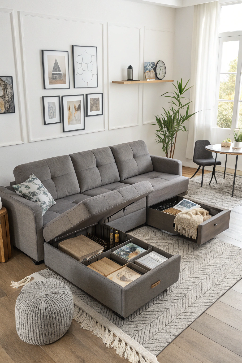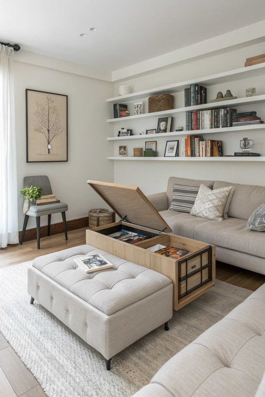 - Use ottomans with compartments to stash blankets or books.