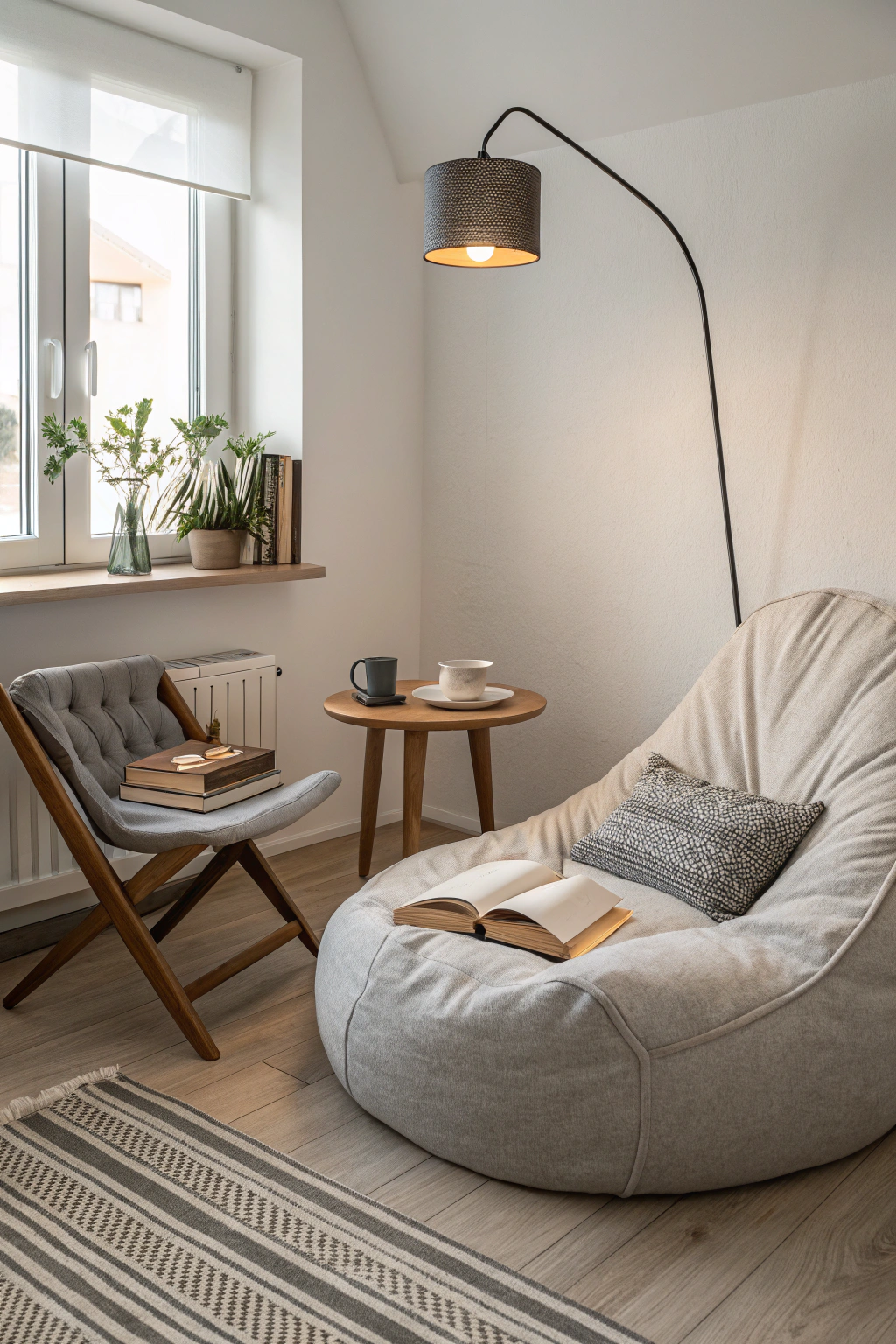 - A small, sleek side table for your books and a cup of tea.