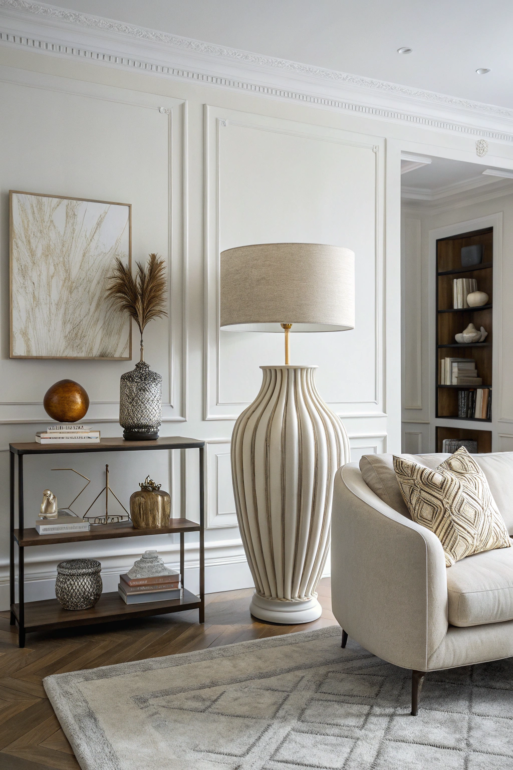 - A unique floor lamp that serves as a focal point