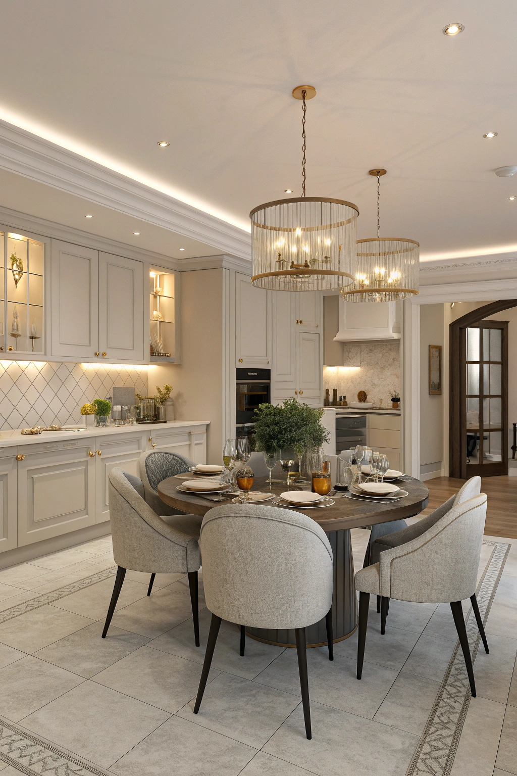 PinAn elegant dining area can elevate your open plan kitchen's overall ambiance, making every meal feel like a special occasion. To achieve this, consider these three elements: