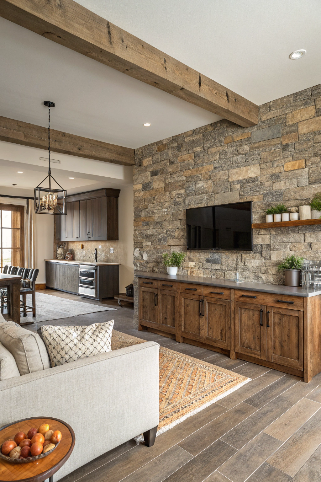 PinCreating a cohesive design in your open plan kitchen living room often involves adding depth and character through textured wall elements. Consider incorporating materials like reclaimed wood, bold stone, or even wallpaper with a tactile finish. These elements can serve as stunning focal points, enhancing your space's warmth and visual interest while seamlessly bridging the kitchen and living room areas for a truly inviting atmosphere.