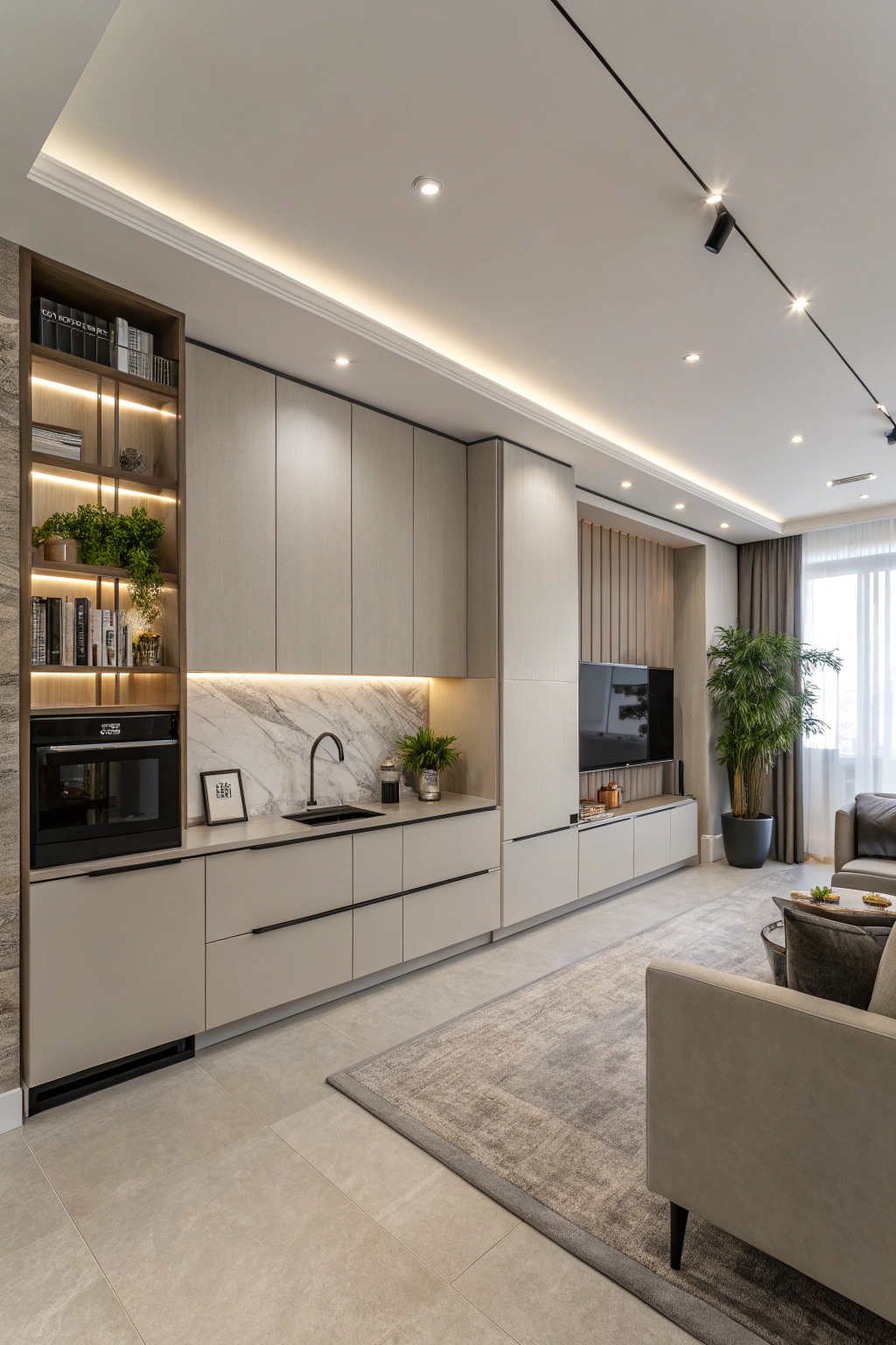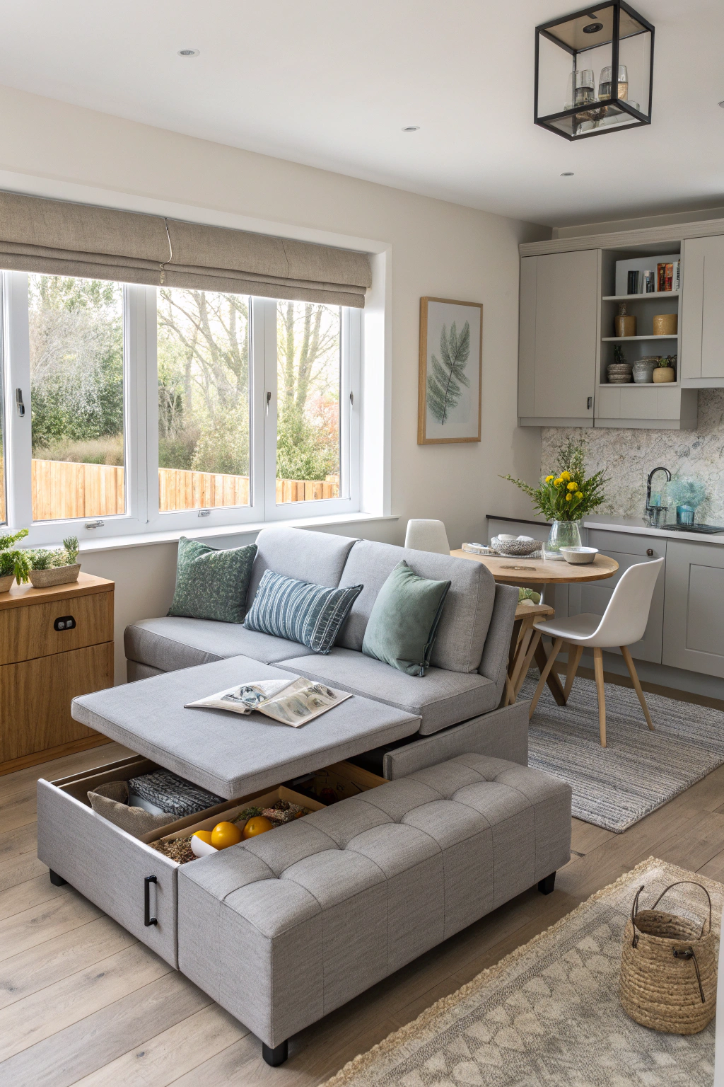 PinIn an open plan kitchen living room, multi-functional furniture is your best ally for maximizing space and utility. It allows you to blend style with practicality effortlessly. Consider including: