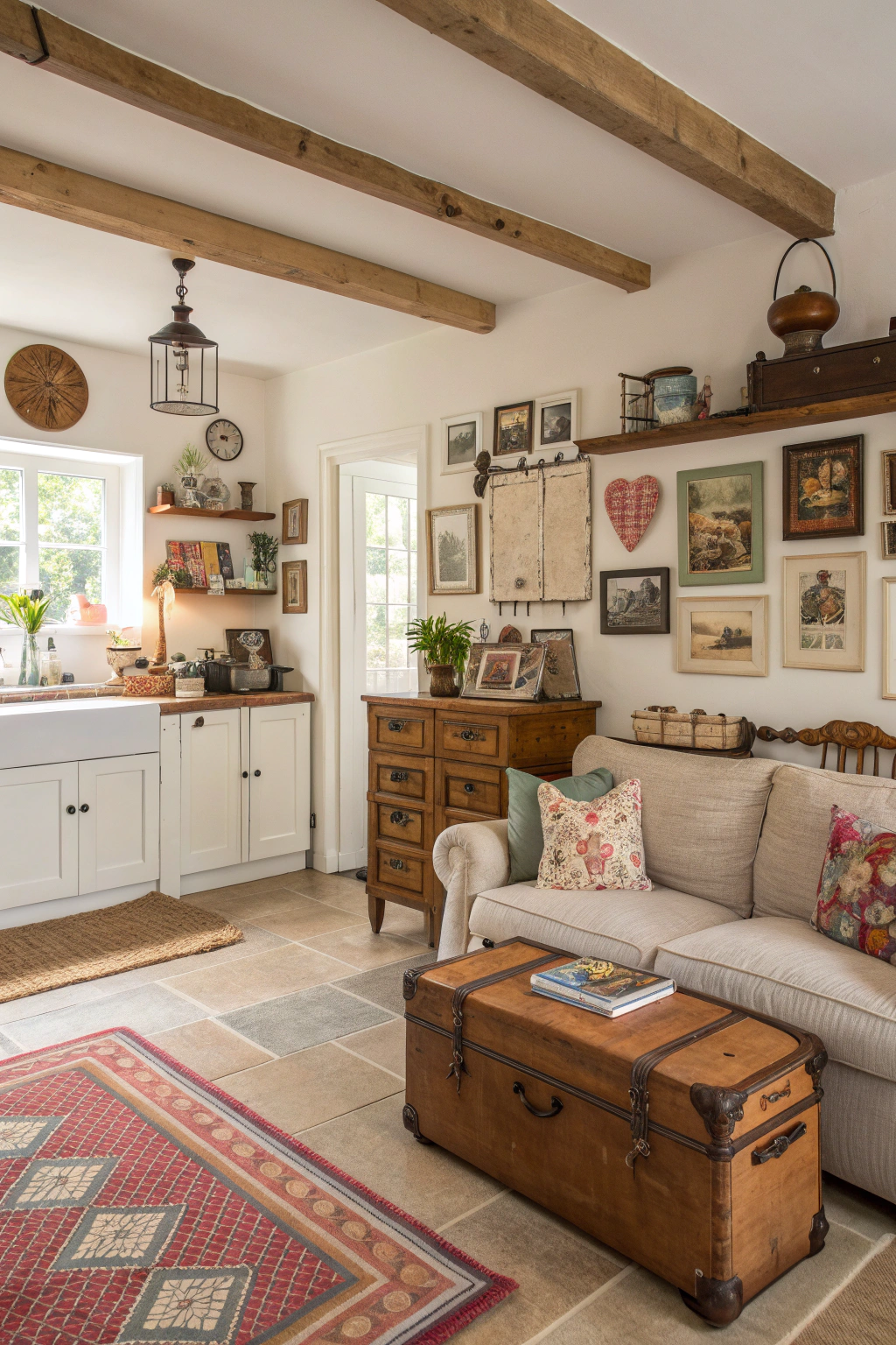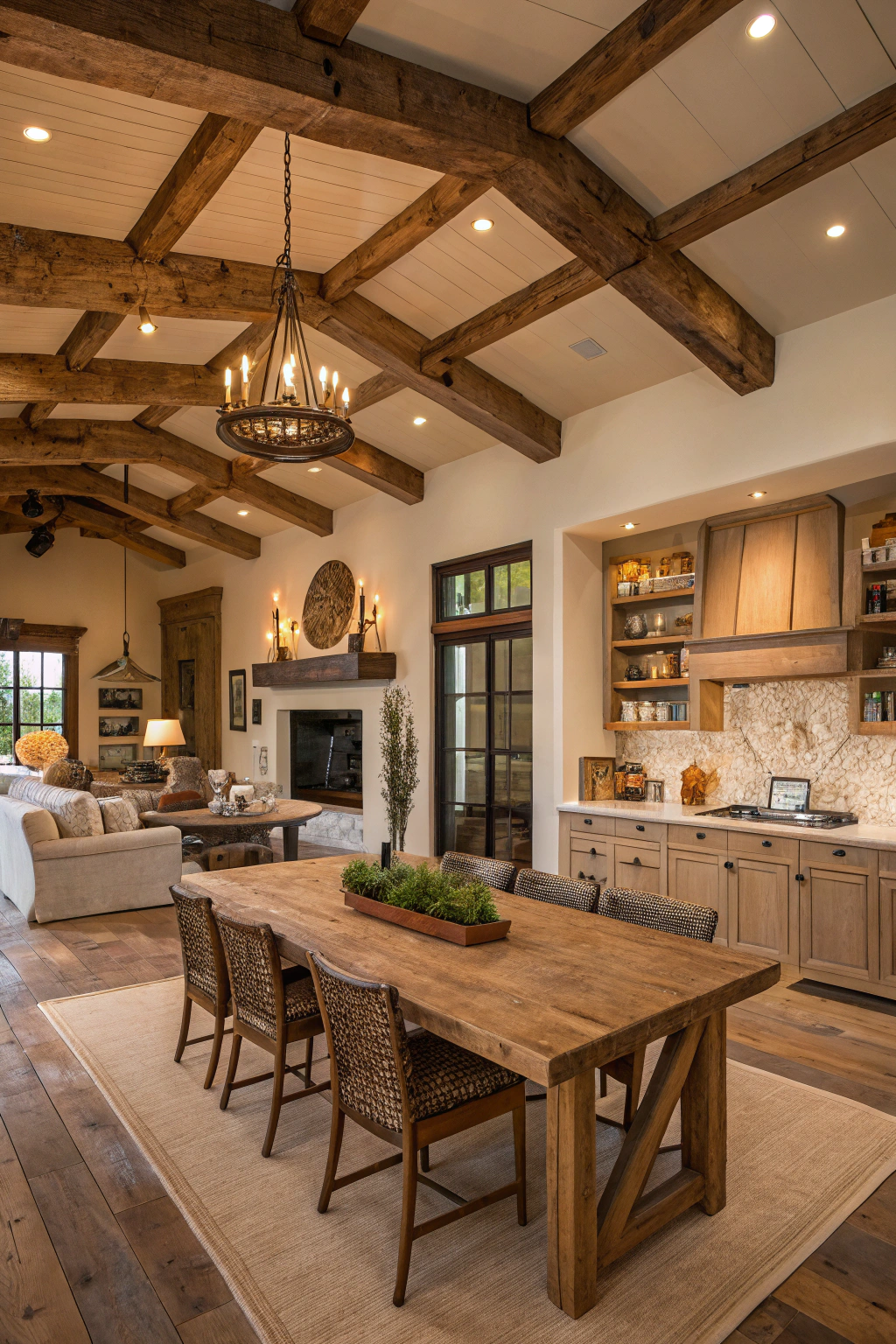 - Reclaimed wood beams on the ceiling for an authentic touch.