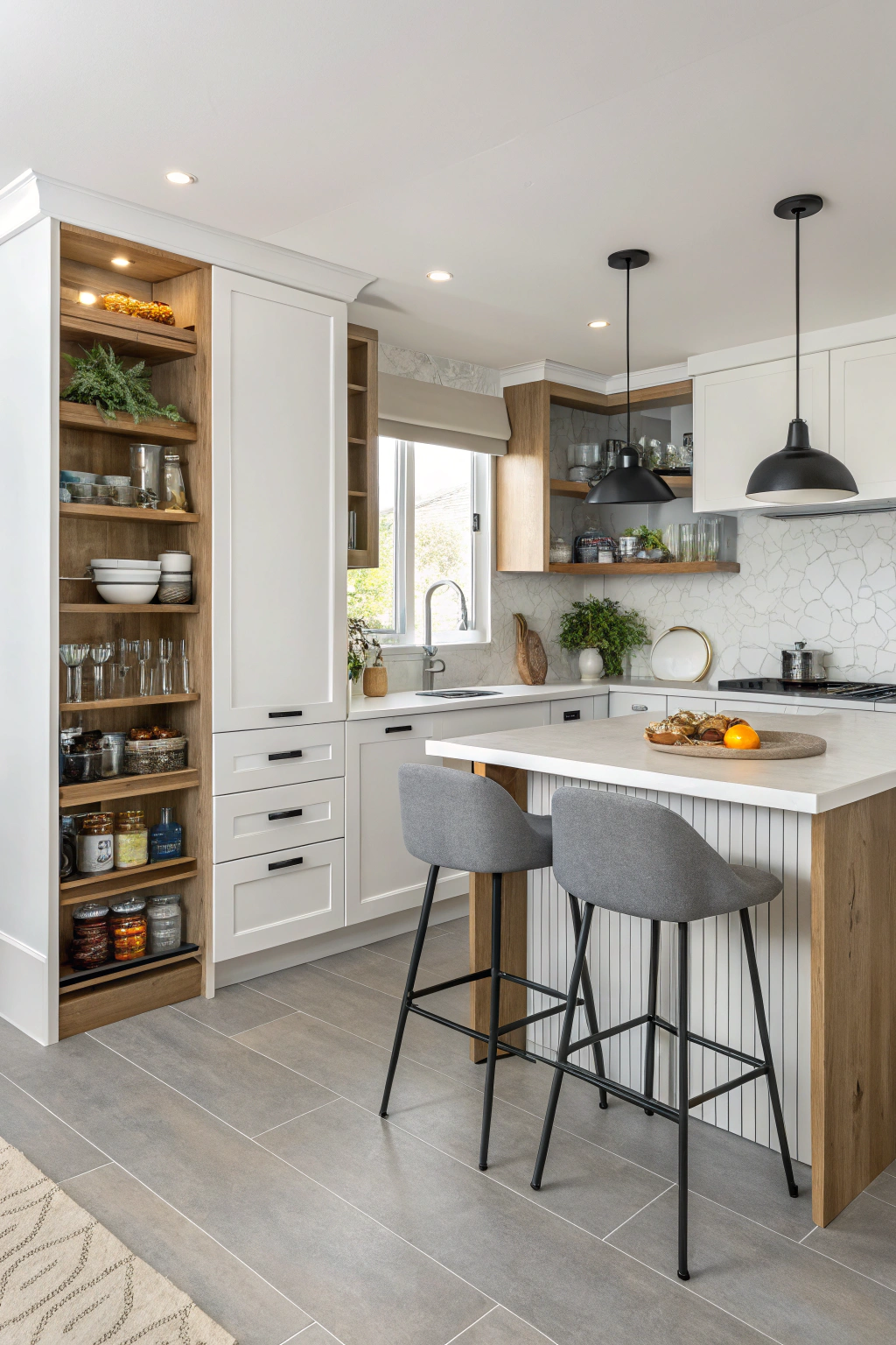 - Vertical shelving for extra pantry space
