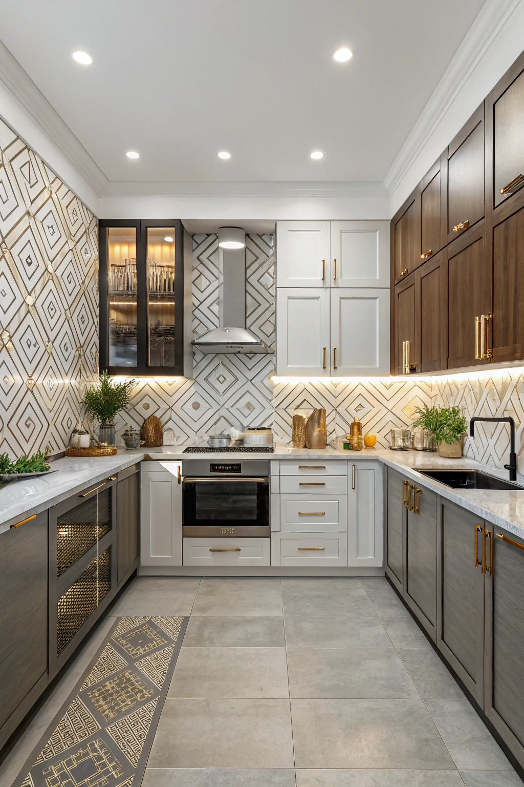 PinAdding glass cabinet accents can elevate the aesthetics of your U-shaped kitchen while allowing you to showcase beautiful dishware and decorative items. These cabinets create an illusion of spaciousness and light, making your kitchen feel more open. You can choose from frosted, clear, or tinted glass to fit your style, giving your kitchen a modern, chic look that can impress guests.