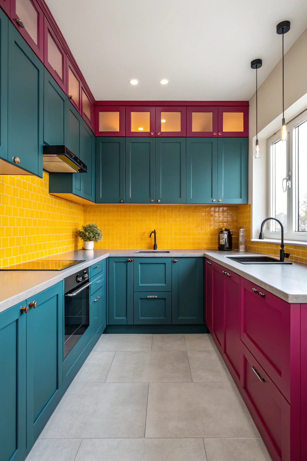 - Rich magenta countertops