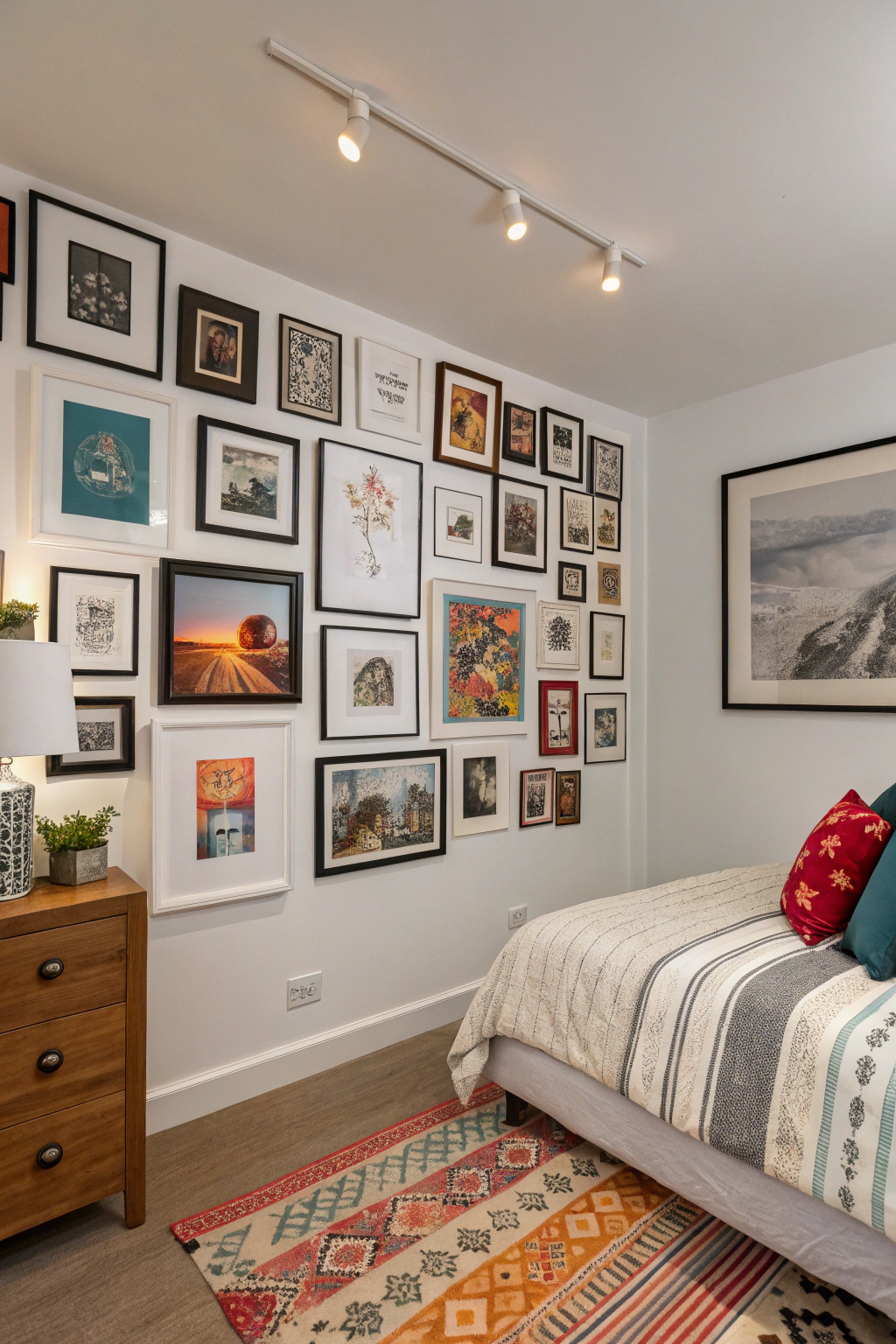 PinA gallery wall can transform your small bedroom into a vibrant showcase of your personality and creativity. Choose a mix of photos, artwork, and prints that reflect your interests. Use various frame styles for added depth and character. Arrange them in a cohesive layout, either in a grid or a more eclectic design. This visual focal point will instantly elevate your space.