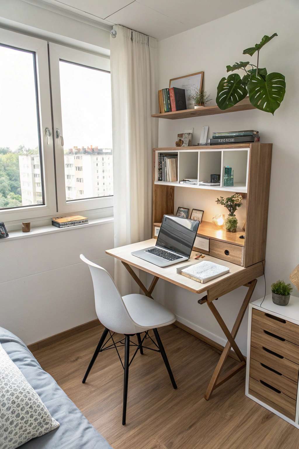 PinAdding a folding desk can elevate your small bedroom's functionality while maintaining a stylish vibe. This space-saving solution allows you to create a dedicated workspace that you can easily tuck away when not in use. Choose a desk that complements your decor and fits your needs. With the right folding desk, you'll maximize space without sacrificing comfort or aesthetics.