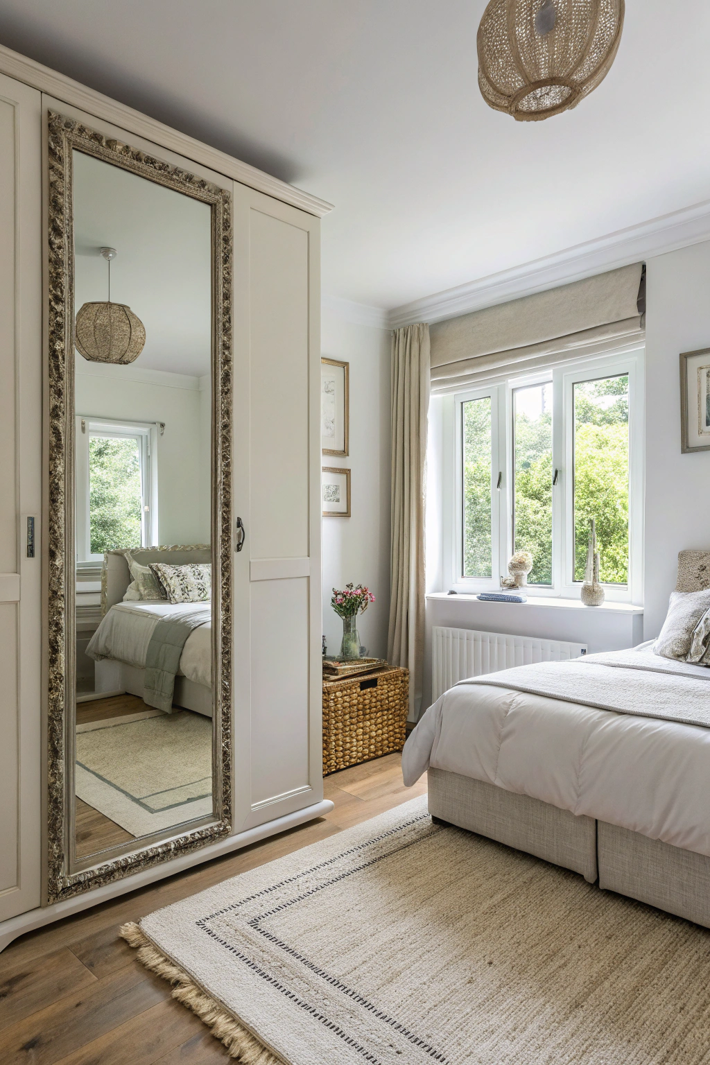 PinIncorporating mirrors into your small bedroom can greatly enhance the sense of space and light. Position a large mirror opposite a window to reflect natural light and create an airy feel. You can also use mirrored furniture to add depth without overwhelming the room. Strategically placed decorative mirrors can serve as focal points, adding style while making your space feel larger.