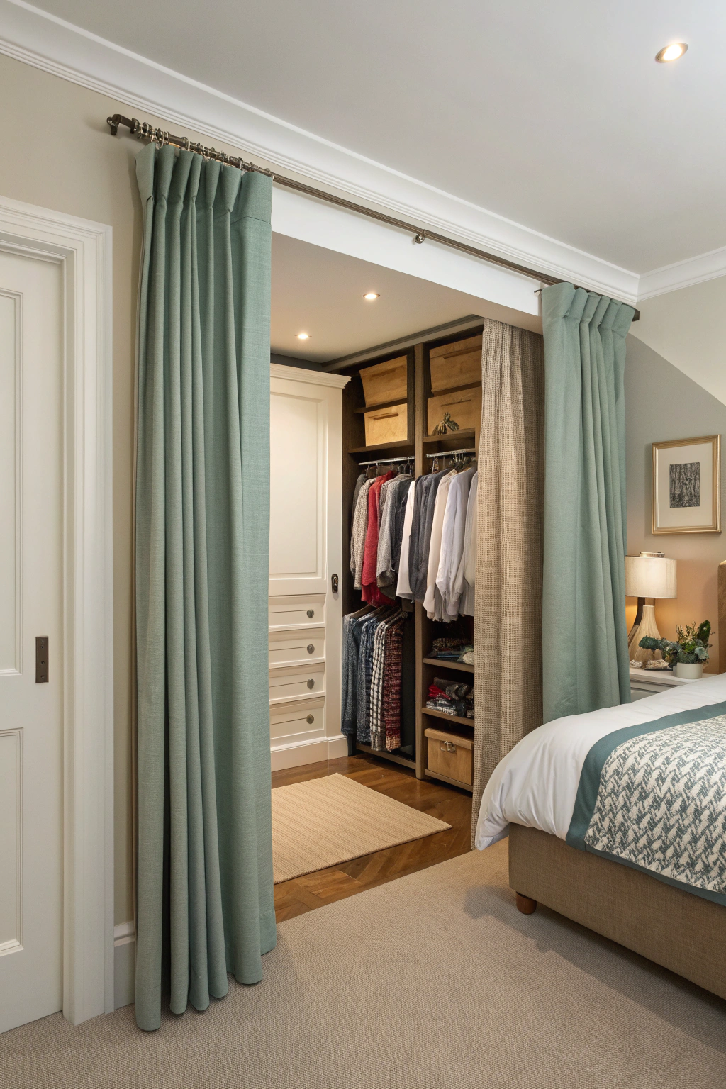 PinUsing curtains for separation can be a stylish and practical solution in a small bedroom. They offer flexibility, allowing you to create distinct areas without the need for solid walls. Consider hanging curtains around your bed or at the closet entrance for added privacy. Choose fabrics that complement your decor, and don't forget to use a tension rod for easy installation and removal.