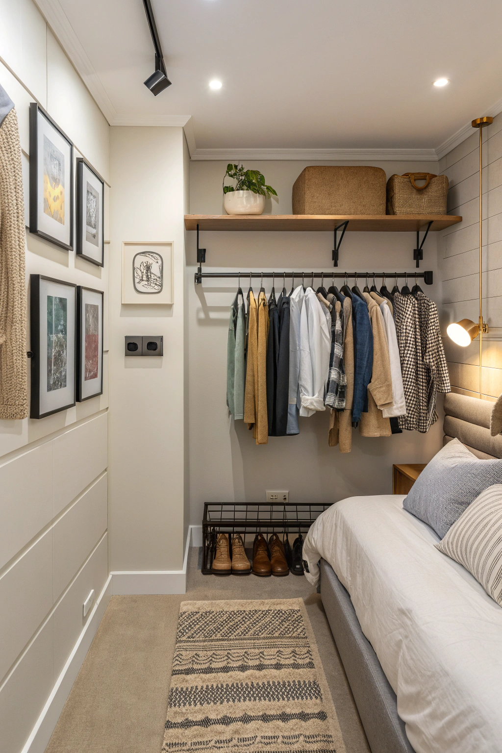 PinUtilizing hooks and wall-mounted racks can revolutionize how you hang clothes in a small bedroom. This method not only saves space but also turns your outfits into decorative elements. Imagine: