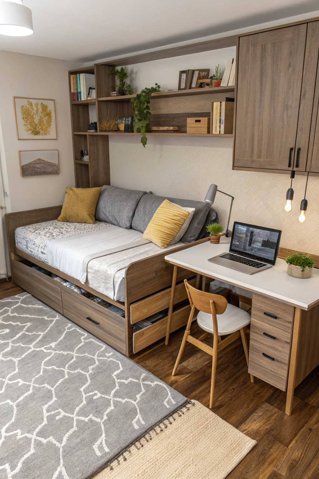 PinWhen you're working with a small bedroom, using multifunctional furniture can be a game changer. Opt for a bed with storage drawers underneath or a sofa that converts into a bed for guests. Consider a desk that doubles as a nightstand or a foldable dining table. These versatile pieces not only save space but also enhance your room's functionality without sacrificing style.