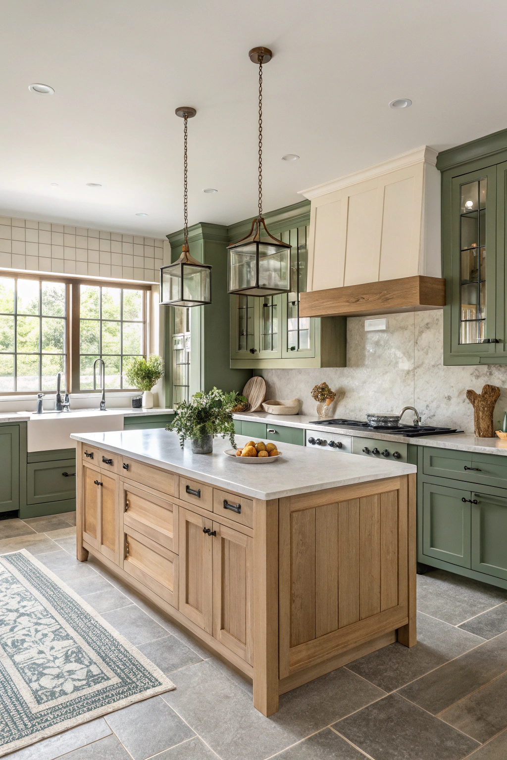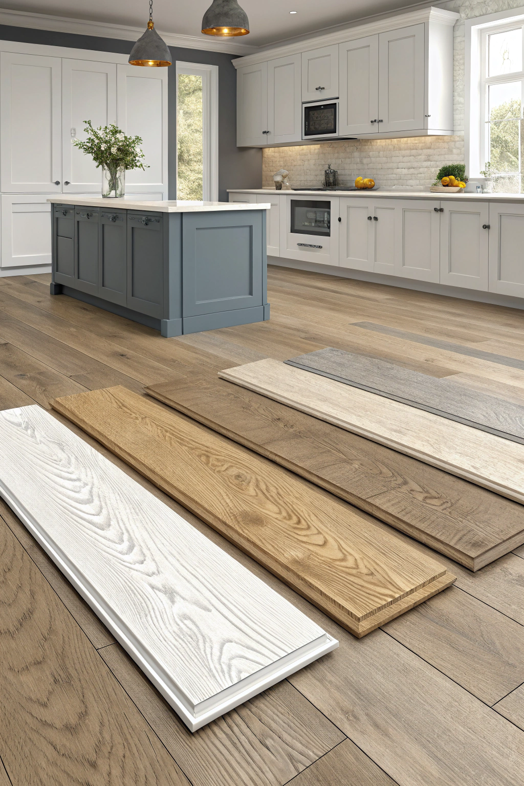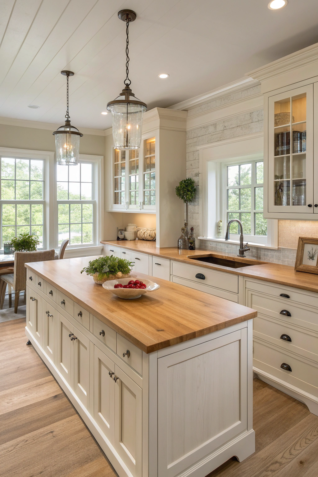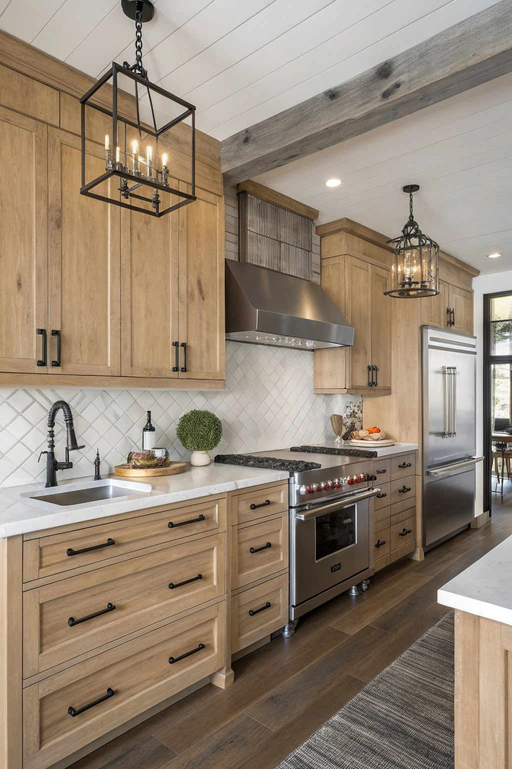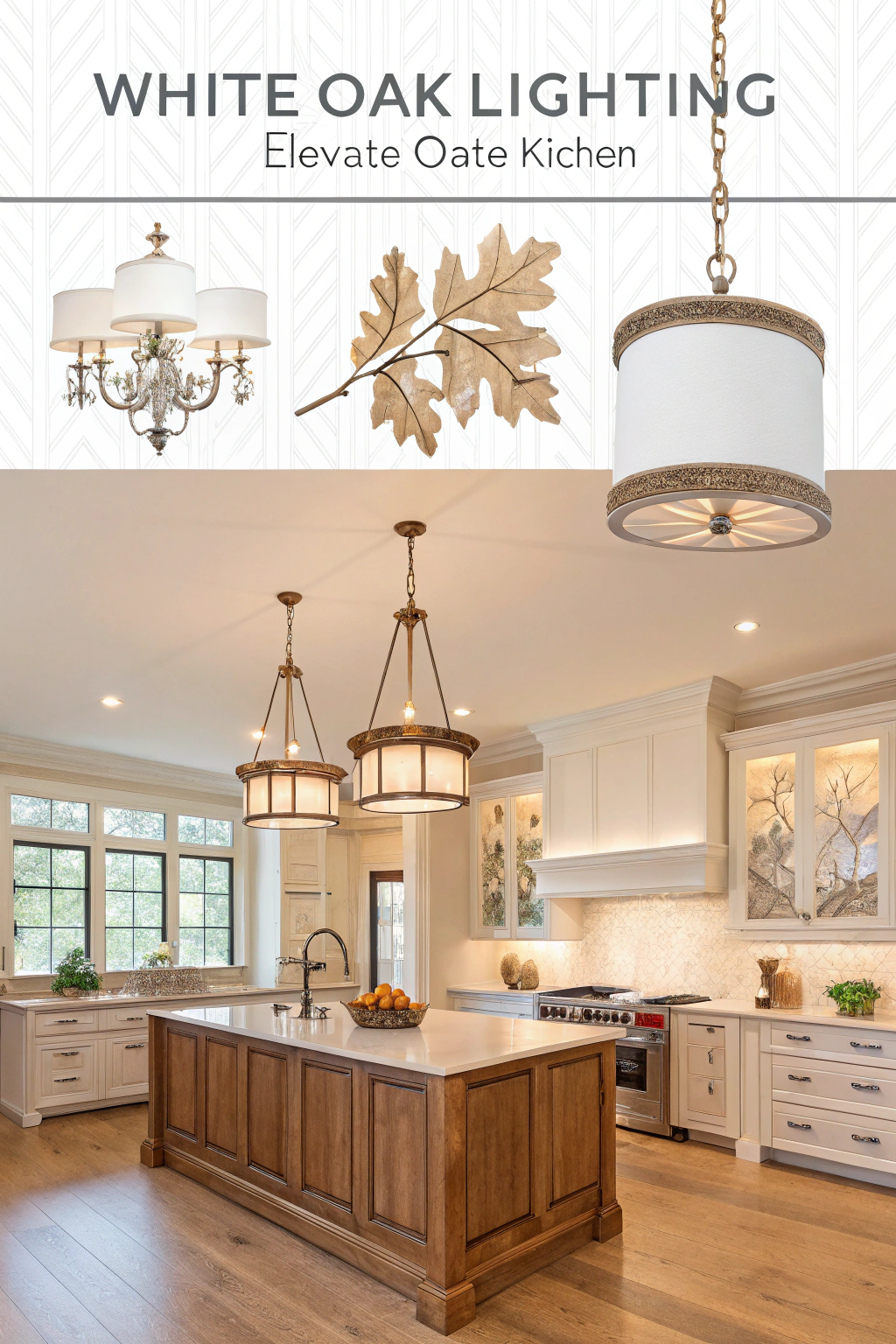 - White oak pendant lights over your island for a stunning focal point.