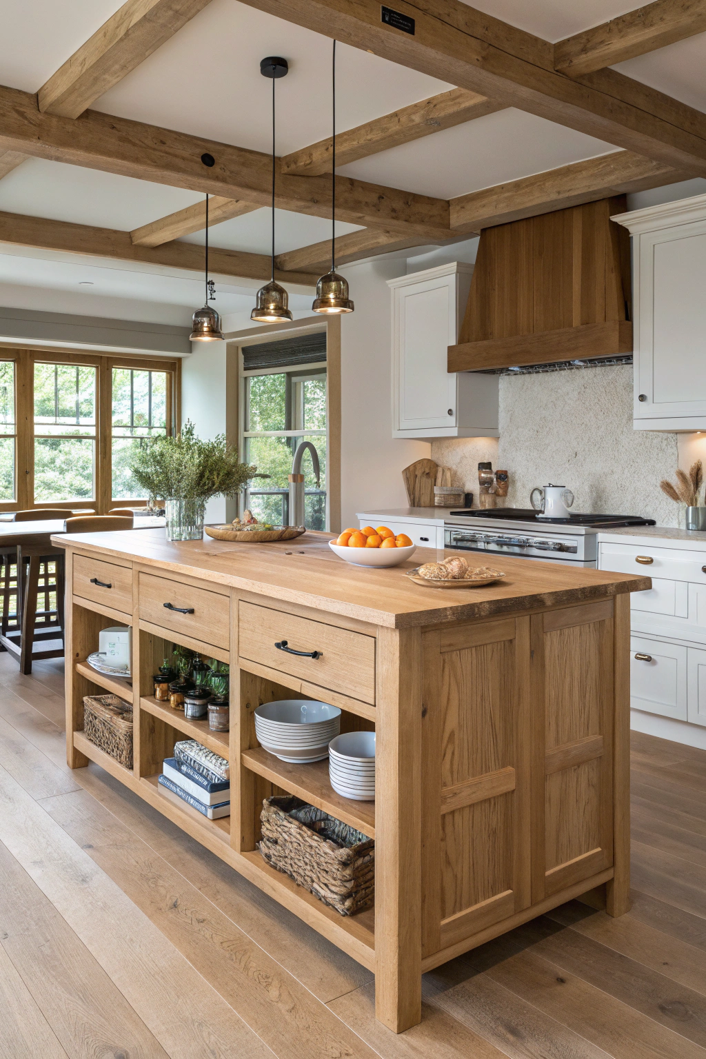 PinFarmhouse white oak styles bring warmth and charm to your kitchen, creating a cozy atmosphere that invites you to gather and cook. Use rustic cabinetry, open shelving, and barn-style doors to enhance the farmhouse vibe. Incorporate distressed finishes and vintage hardware for a timeless look. Pair with soft textiles and greenery to add an inviting touch that complements your white oak features beautifully.