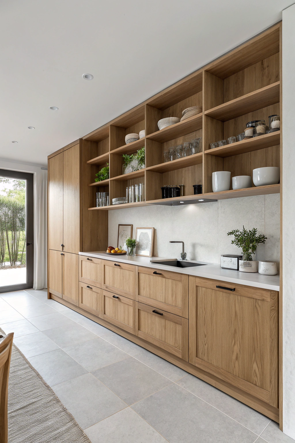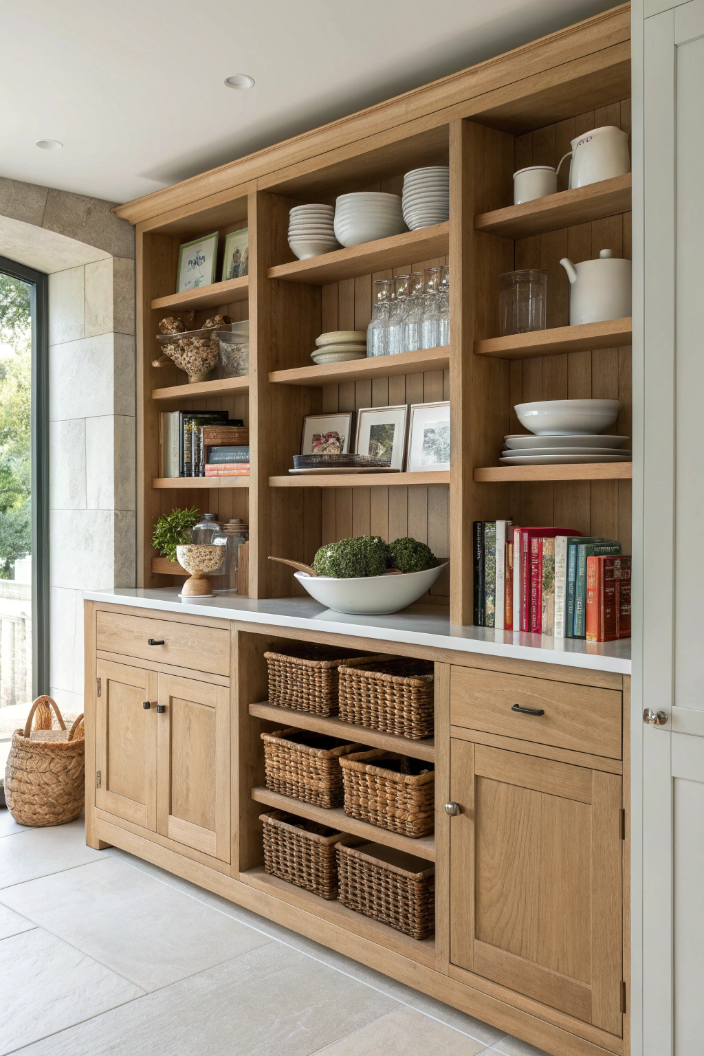 Open Shelving With White Oak