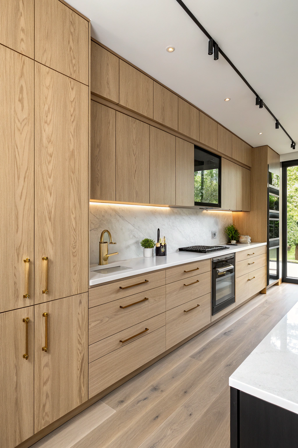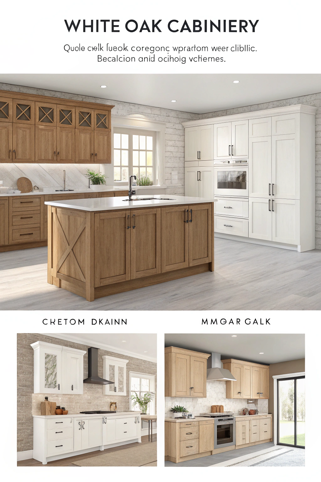 - Reclaimed White Oak: Use reclaimed wood to reduce waste and give your kitchen unique character.