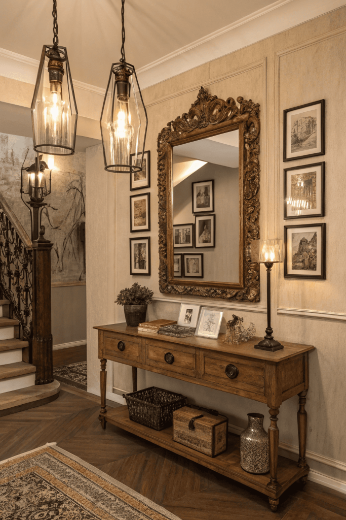 Incorporating vintage accents into your foyer adds character and charm that can't be replicated with modern decor. By mixing in unique pieces, you create a warm, inviting atmosphere. Consider these vintage accents: