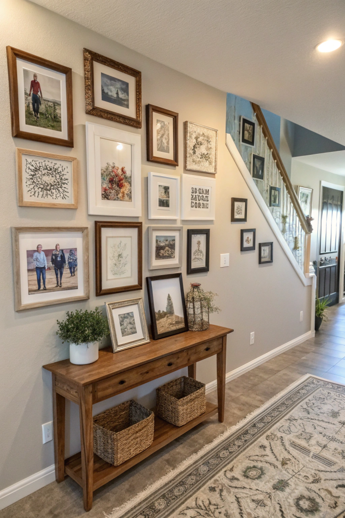 Transforming your entryway with a gallery wall can add personality and style to the space. Start by selecting a mix of artwork, photos, and decorative items that reflect your taste. Arrange them in a cohesive layout, either symmetrically or asymmetrically. Use different frame styles and colors for added interest, and don't forget to include personal mementos that tell your unique story.