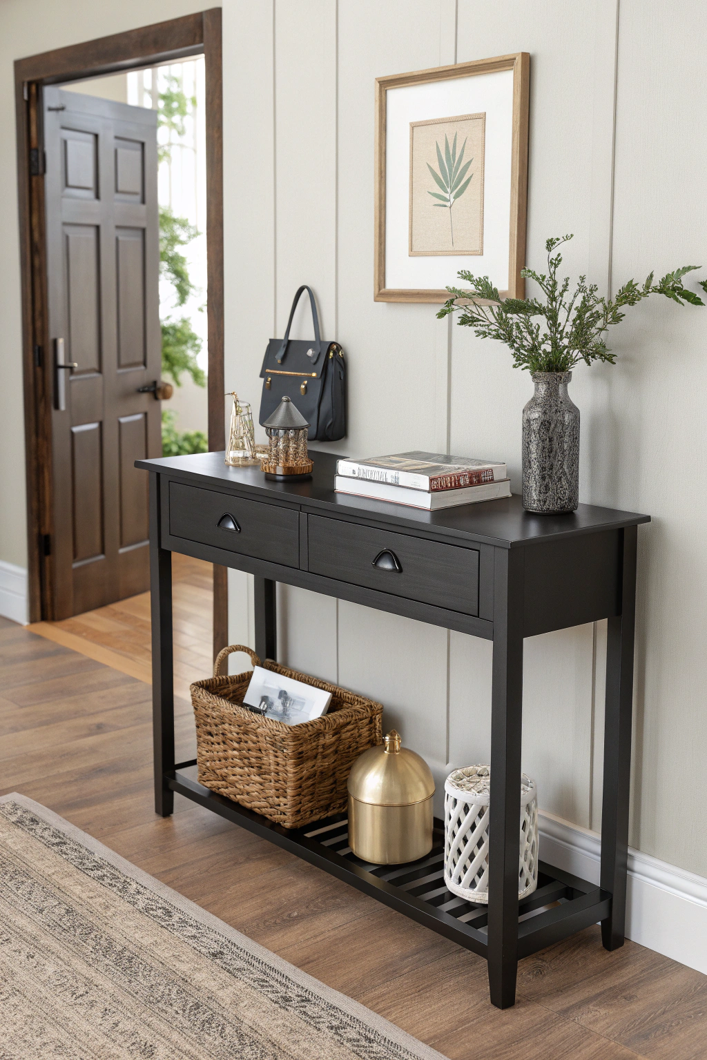 - A sleek console table with drawer space