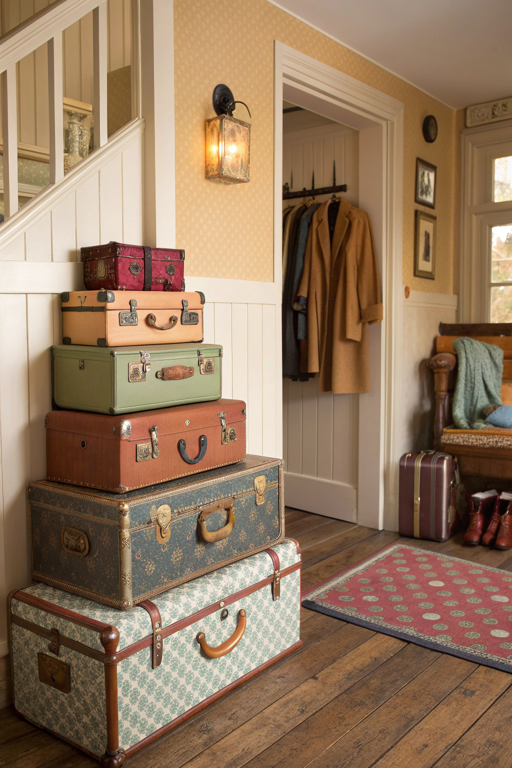 PinVintage suitcases can add a unique charm and character to your entryway decor while serving as practical storage solutions. You can stack them for a stylish display or use them individually for easy access to shoes, blankets, or seasonal items. Choose suitcases with different colors and patterns to create visual interest, making your entryway both functional and inviting for guests.